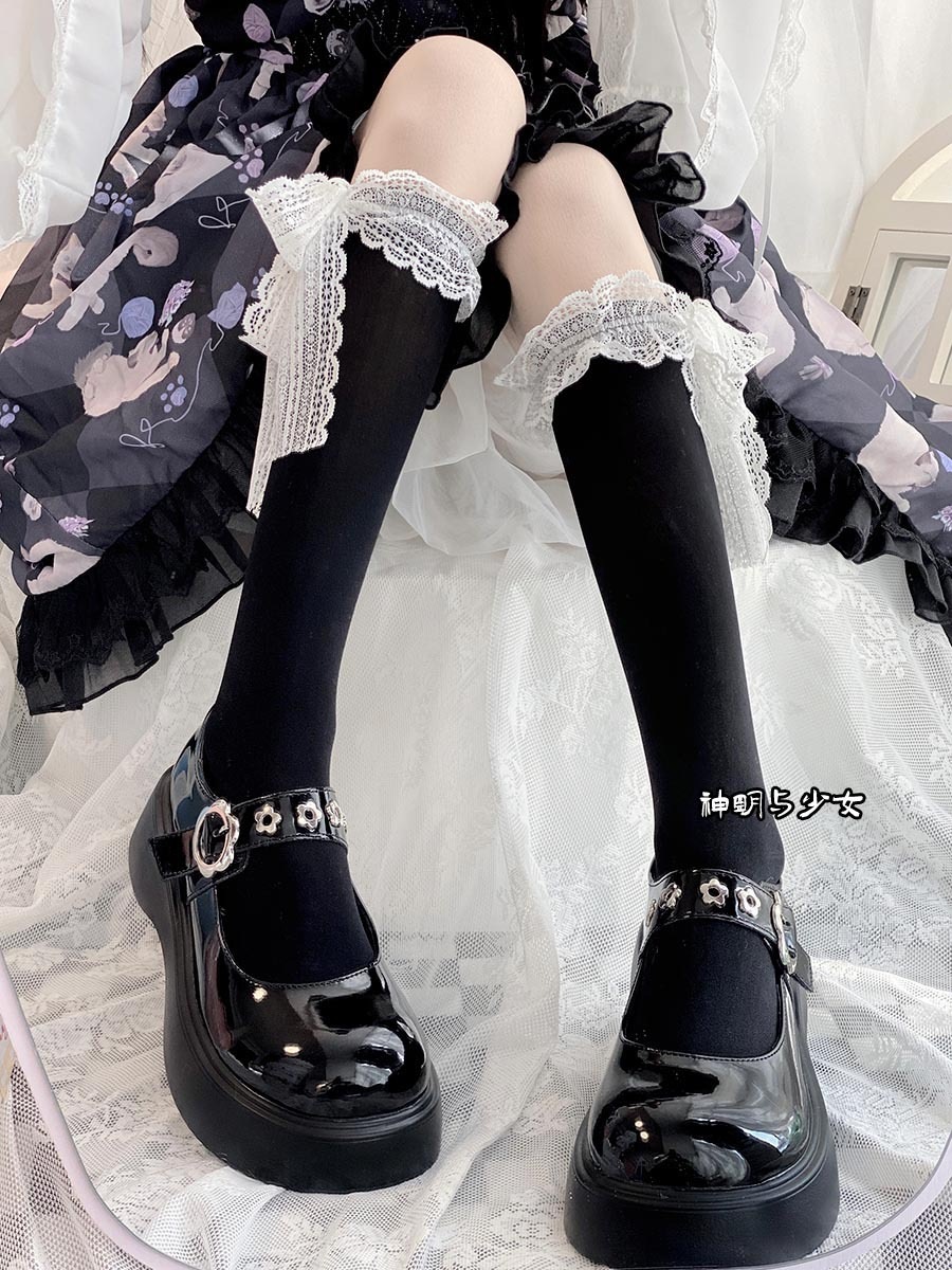ロリータ リボン レース ショートソックス ミドルソックス レディース JK 白 甘い ロリータ レース ふくらはぎ ソックス