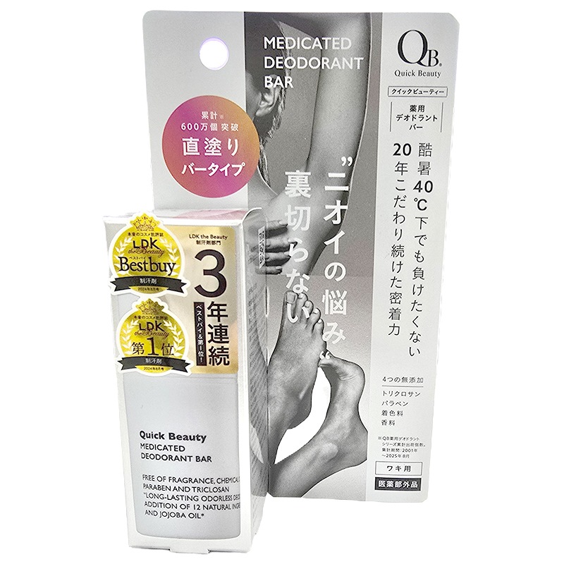 QB(クイックビューティ) 薬用デオドラントバー 20g 40C 【医薬部外品】制汗剤 消臭 殺菌 スティックタイプ わきが 腋臭 足臭 体臭 汗臭 臭い 対策
