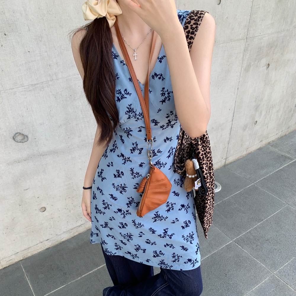 韓国ファッション レディース かわいい vネック花柄タンクトップワンピース 夏 カジュアルワンピース