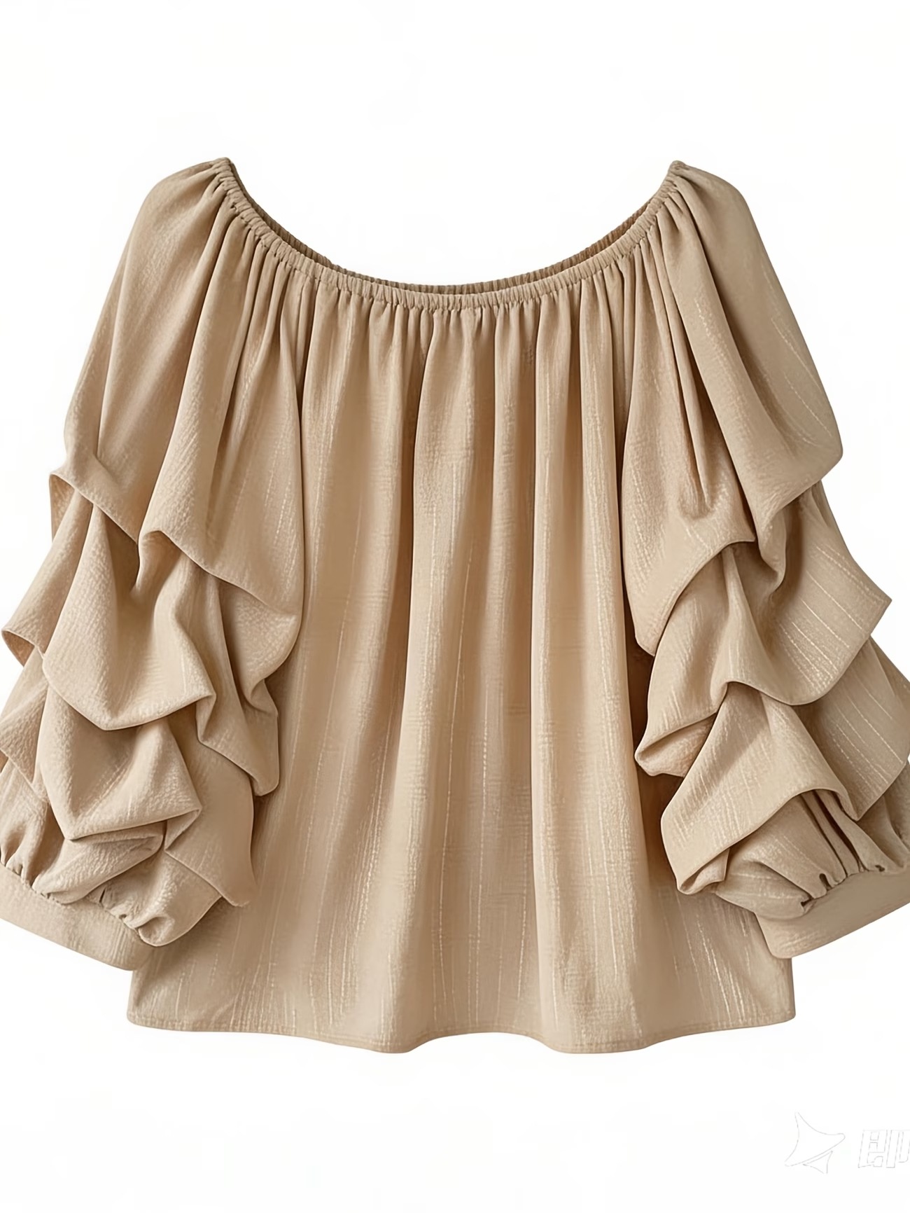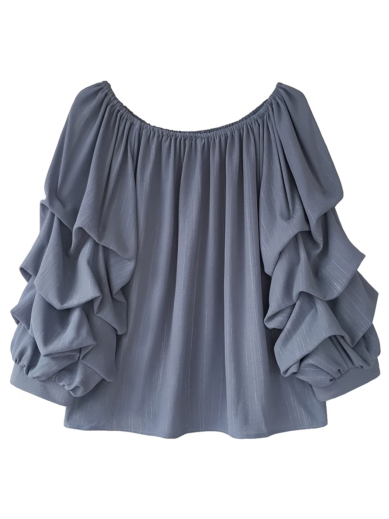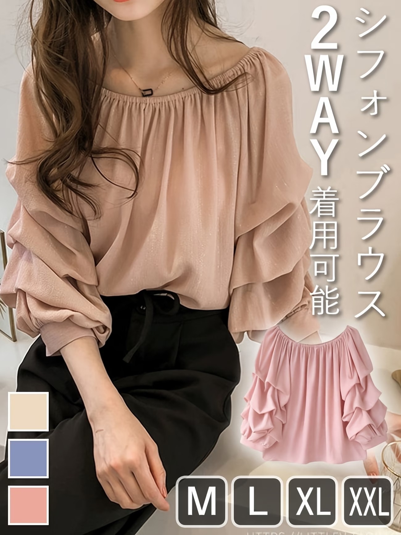レディース エレガント オフショルダー シフォン ブラウス 体型カバー 春夏にも快適 シャツブラウス シャツ 着痩せトップス レディース チュニック Vネック 長袖 薄手 大きいサイズ 4146