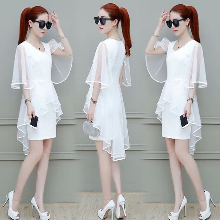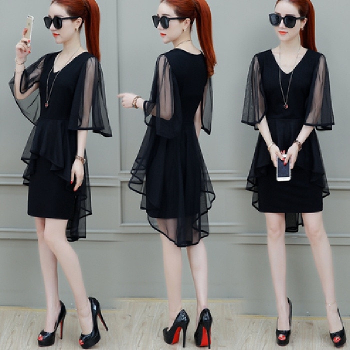 【セクシーで肌見せすぎない】女性用スリムフィットワンピース(夏用) スリム効果幻想的でクールなネット素材のミディ丈ワンピースその他トレンドワンピース