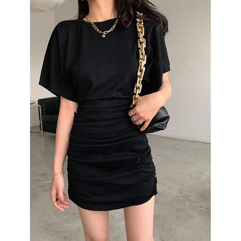 プリーツ入りヒップライン強調ショートスリーブショートワンピース(男女兼用・夏用) セクシーなウエストマークでスリムに見えるフィット感のワンピーススカートその他ワンピース