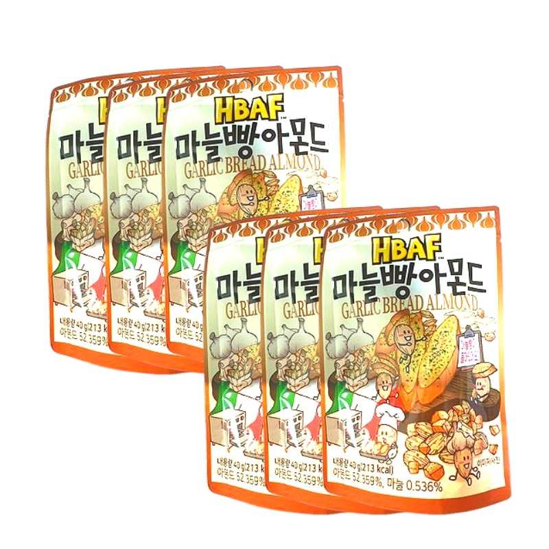 HBAFガーリックブレッドアーモンド 40g×6個 韓国お菓子 ナッツスナック にんにく味 甘じょっぱい おやつ 人気