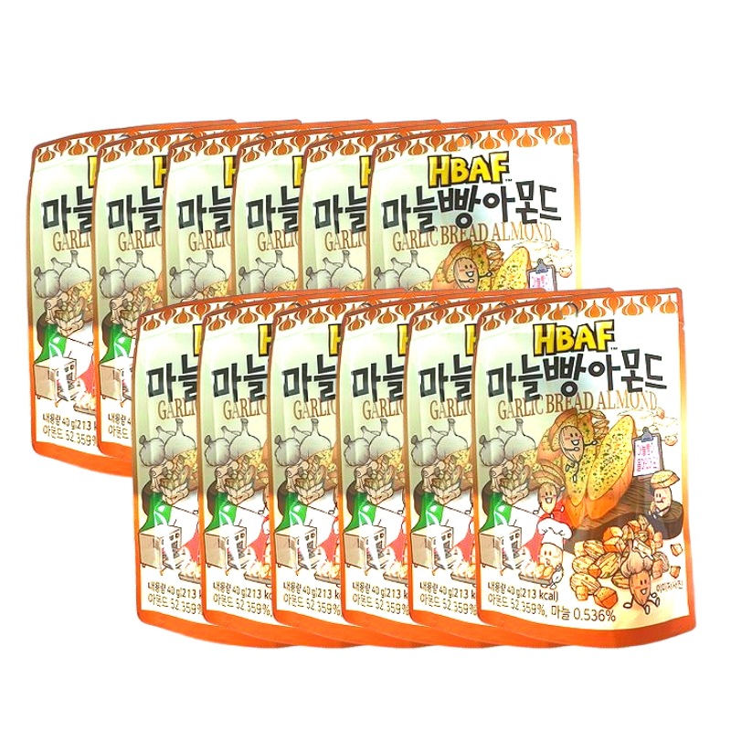 HBAFガーリックブレッドアーモンド 40g×12個 韓国お菓子 ナッツスナック にんにく味 甘じょっぱい おやつ 人気