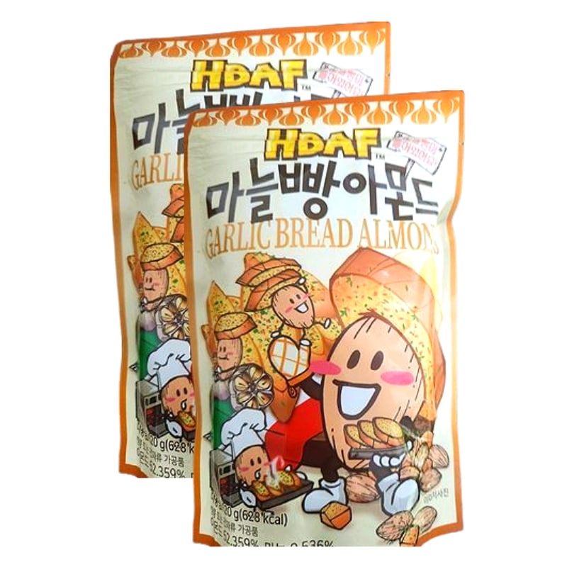 HBAFガーリックブレッドアーモンド 120g×2袋 韓国お菓子 ナッツスナック にんにく味 甘じょっぱい おやつ 人気