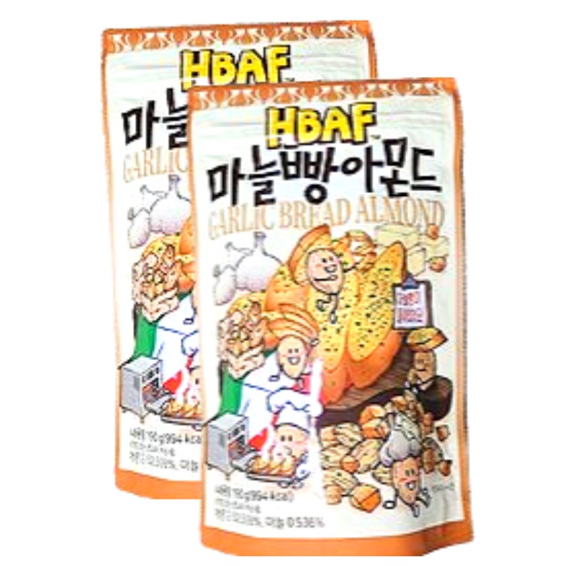 HBAFガーリックブレッドアーモンド 190g×2袋 韓国お菓子 ナッツスナック にんにく味 甘じょっぱい おつまみ 人気