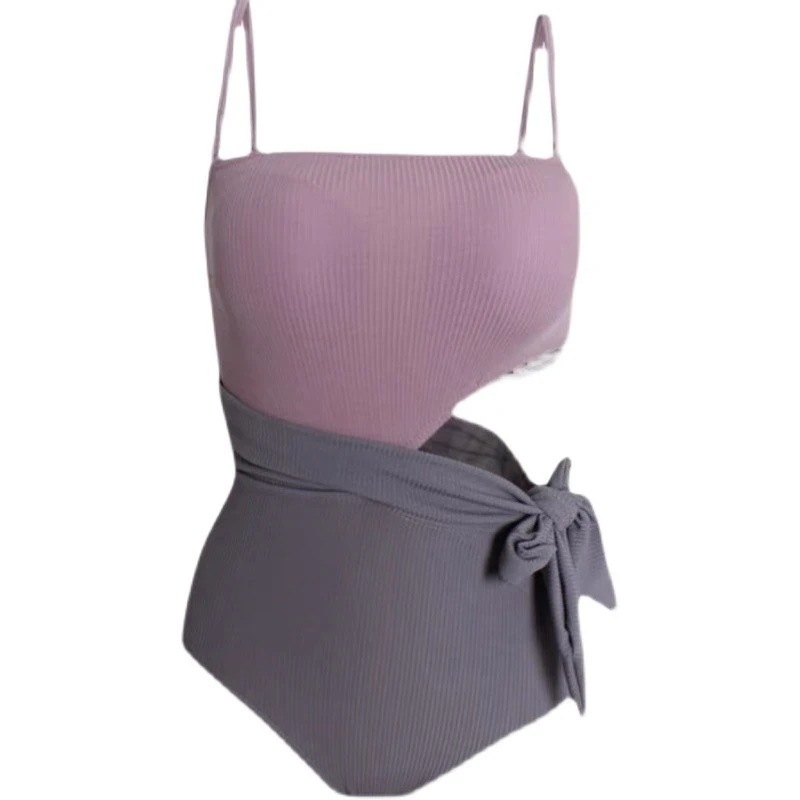 韓国 セクシー ホットな女性 紫色の水着 女性用 ストラップ付きトライアングルワンピース水着 温泉リゾート用水着