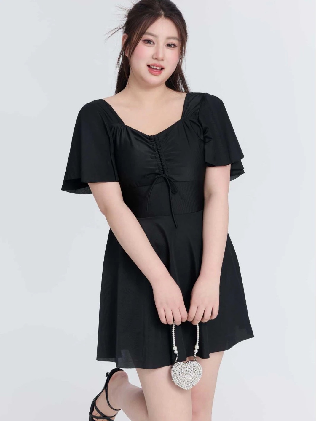 2026年新作 キュート ぽっちゃり体型向け 体型カバー プラスサイズ 2点セット スリム効果 チェック柄 レディース水着