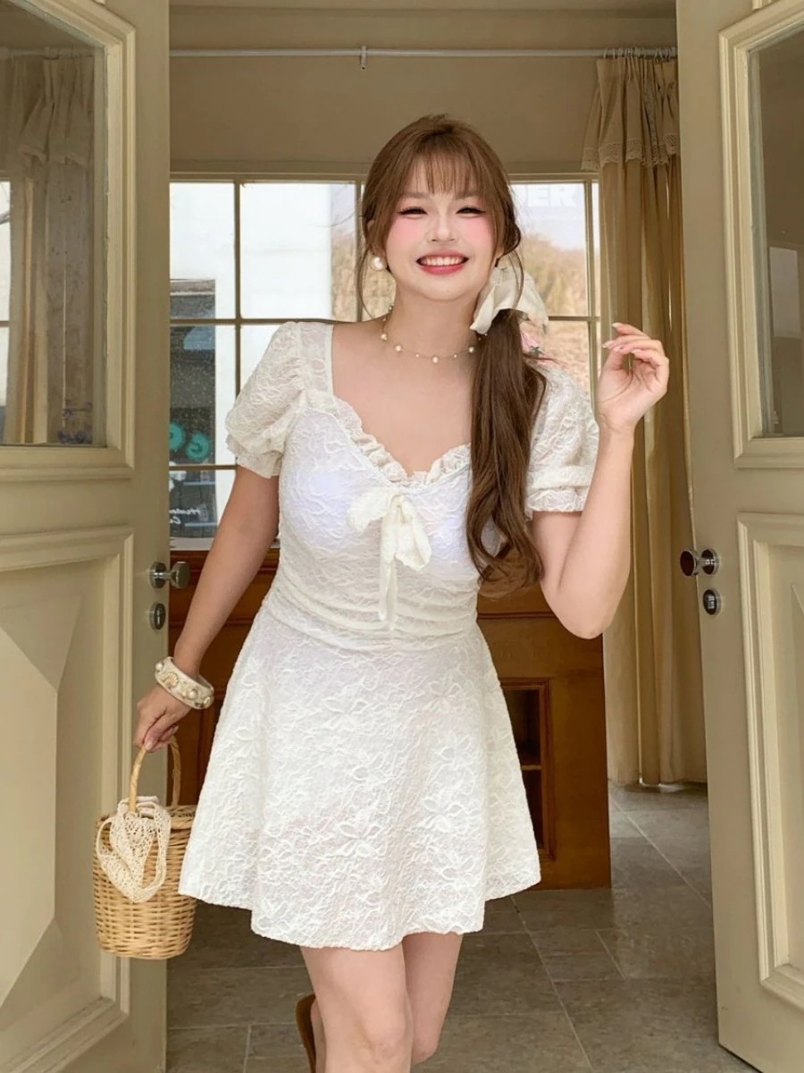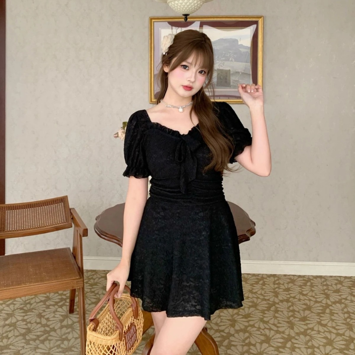 2026年新作 プラスサイズ お腹隠し 控えめなスカート型 ワンピース水着 ガーリー風 温泉・リゾート用水着