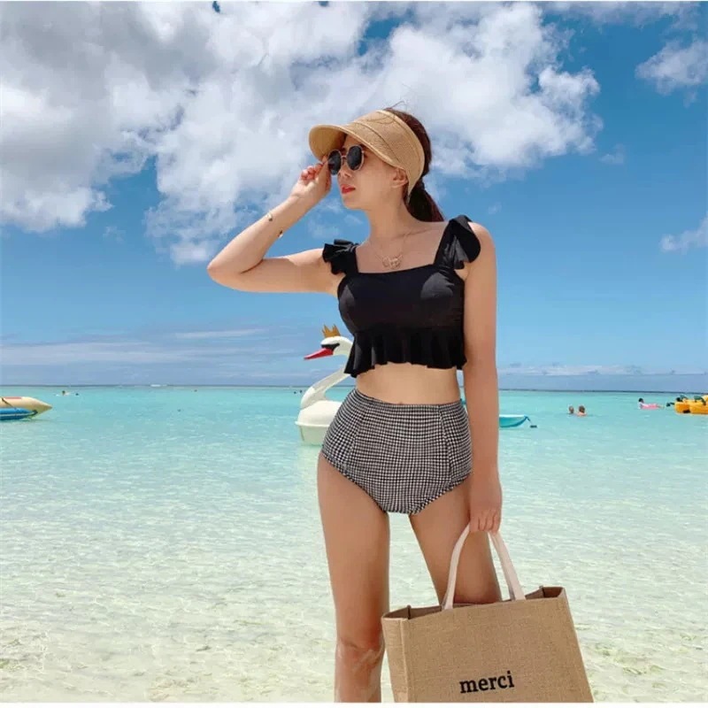 セクシーなビキニ レディース 夏 ビーチリゾート風 三角ビキニセット ハイウエストストラップ ツーピース水着