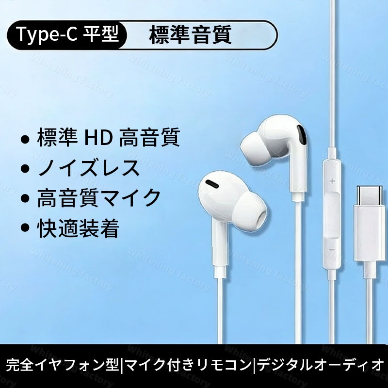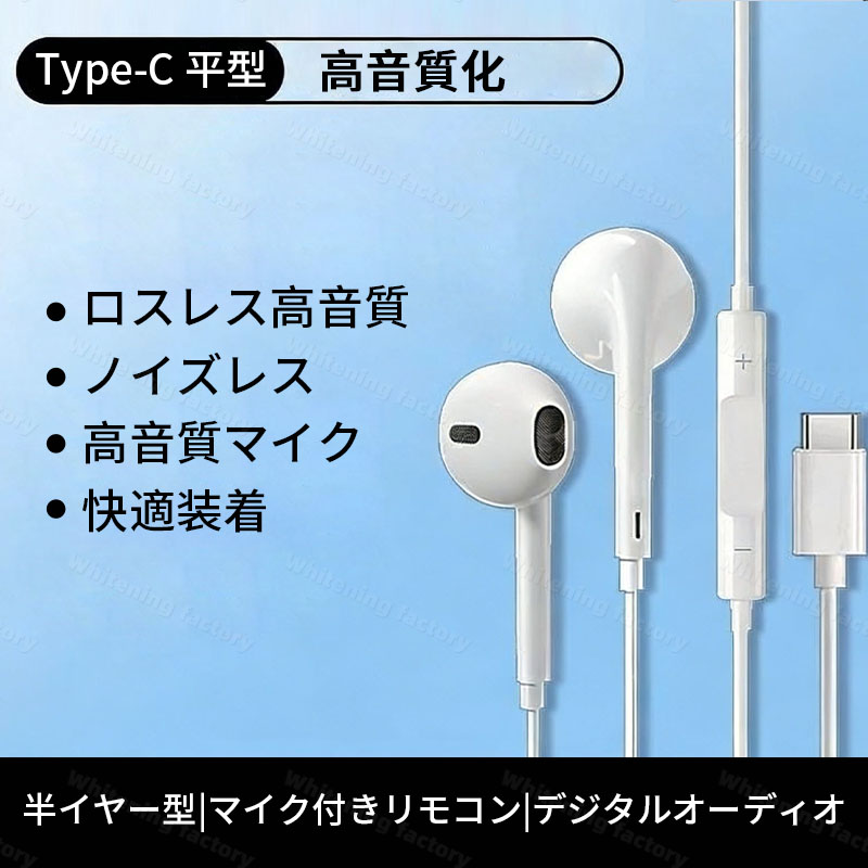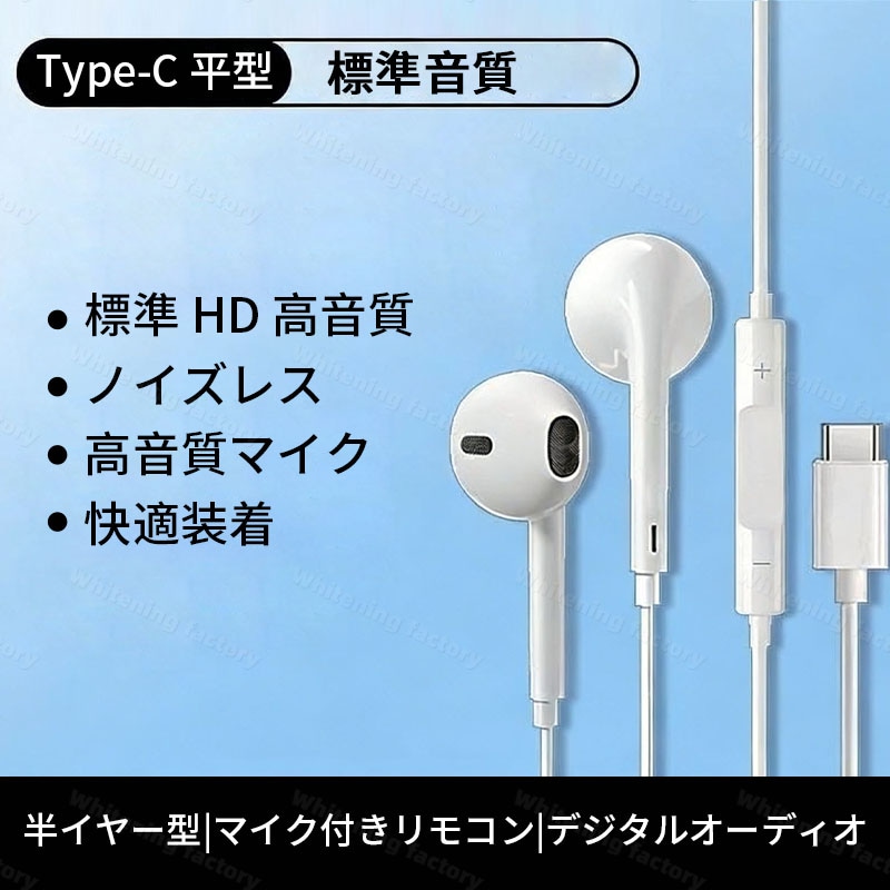 Type-C 有線イヤホン iPhone 15/16/17 対応 Hi-Fi 高音質 デジタルオーディオ カラオケ / ゲーム / 通話可 マイク付き