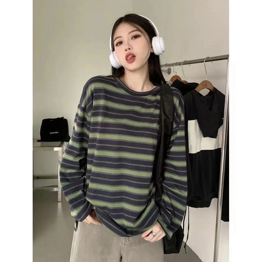 ロンT 秋の新作ゆったりストライプ長袖Tシャツレディースins学生薄手トップス Tシャツカットソー Tシャツ カットソー