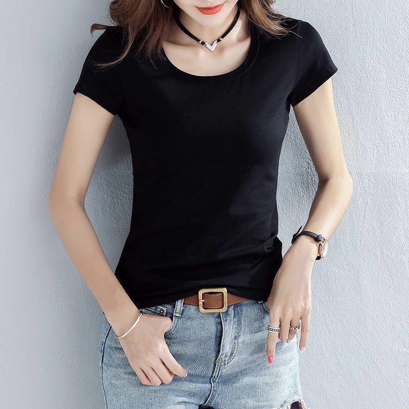 ソリッドカラーパフスリーブTシャツレディース夏韓国スタイルルーズカジュアルラウンドネック半袖 Tシャツ カットソー