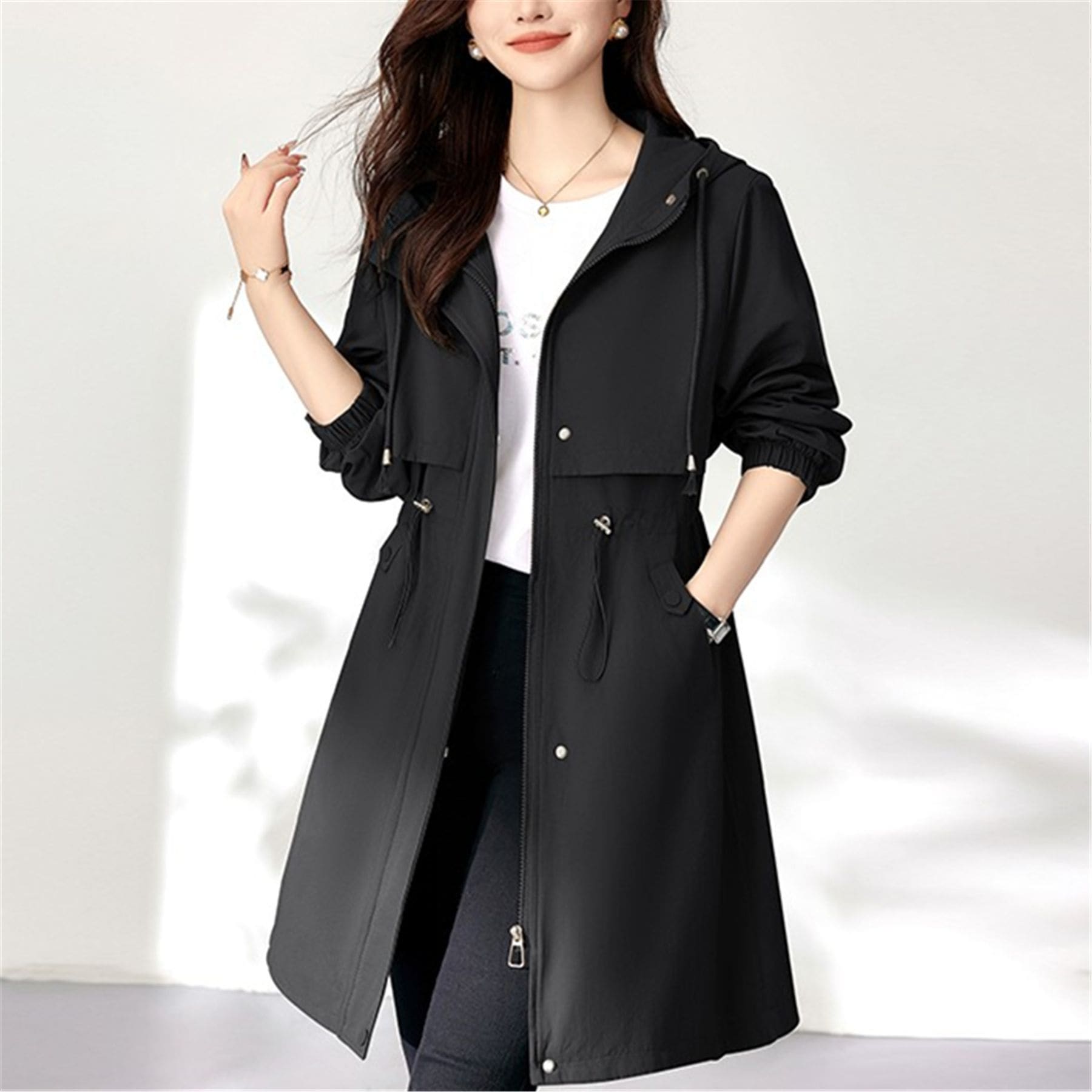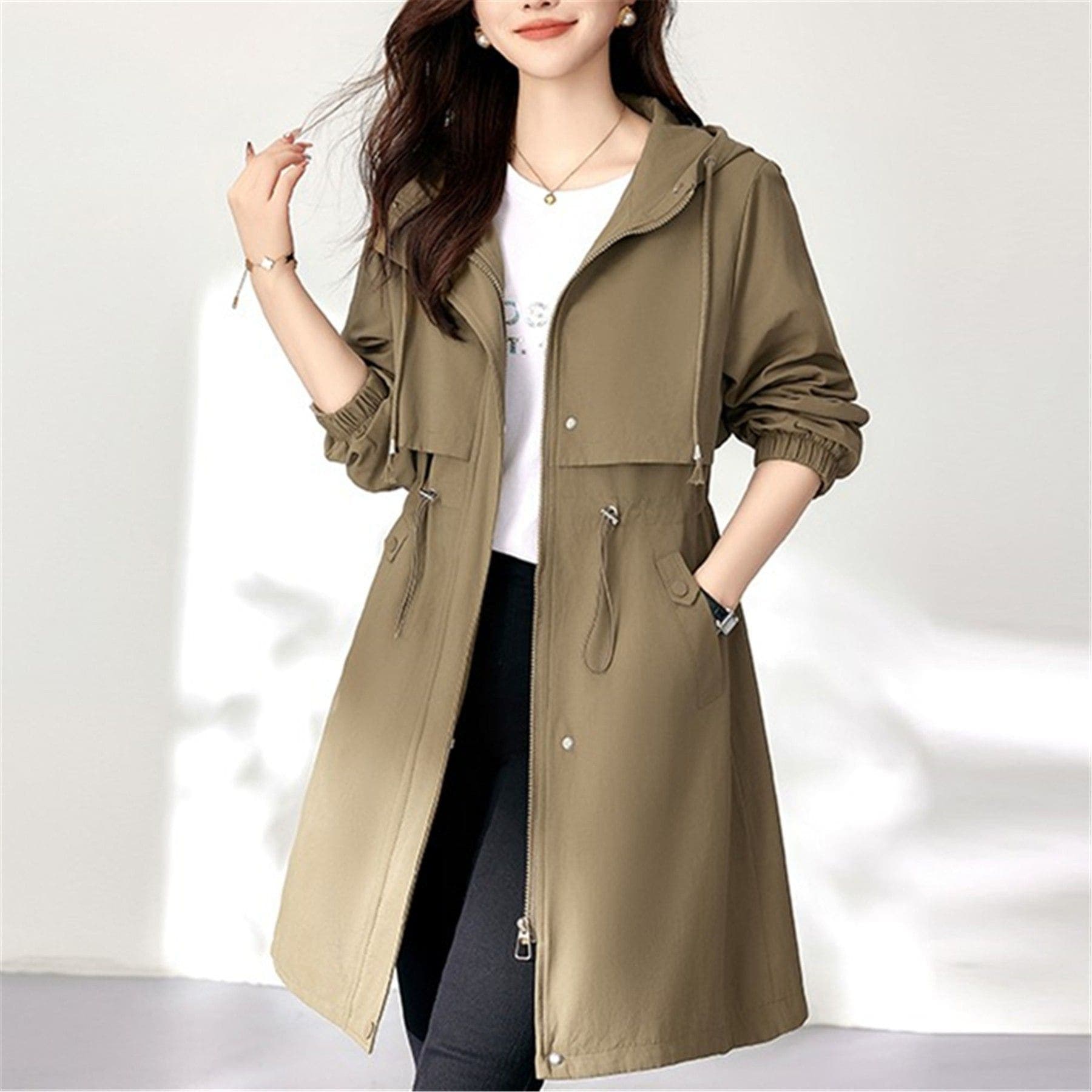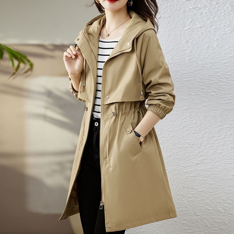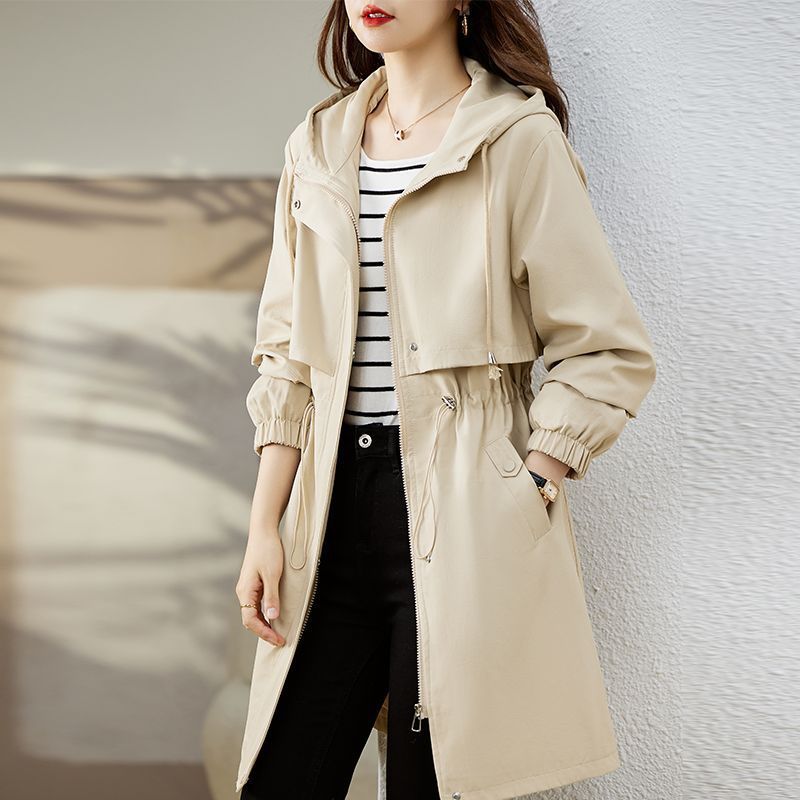 【即納】フードトレンチコート レディース 春 秋 プリングコート ロングコート 羽織り トレンチ アウター コート ロング ロング丈 裏地付き デザイン オリジナル カジュアル 通勤 オフィス 入学式