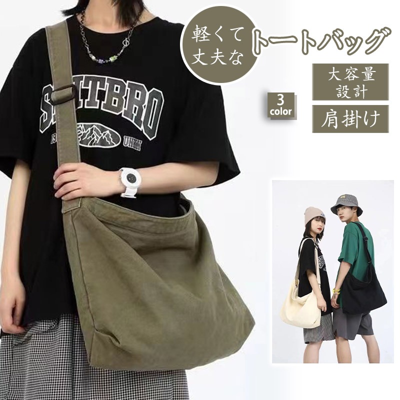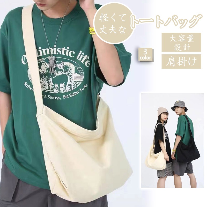 [新品推奨] ショルダーバッグ 大きめ レディース メンズ 斜め掛け ファスナー 軽い 軽量 a4 大容量 通勤 通学 帆布