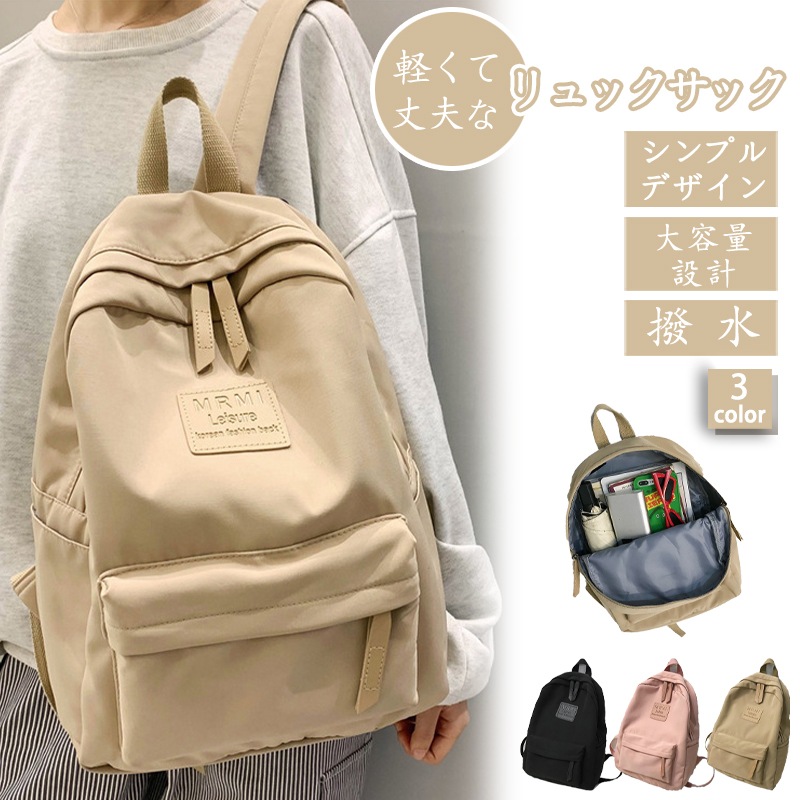 [新品推奨] リュックサック レディース シンプル メンズ 無地 デイパック 男女兼用 大容量 バッグ 可愛い 通勤 旅行 撥水加工 バックパック 軽い お出かけ