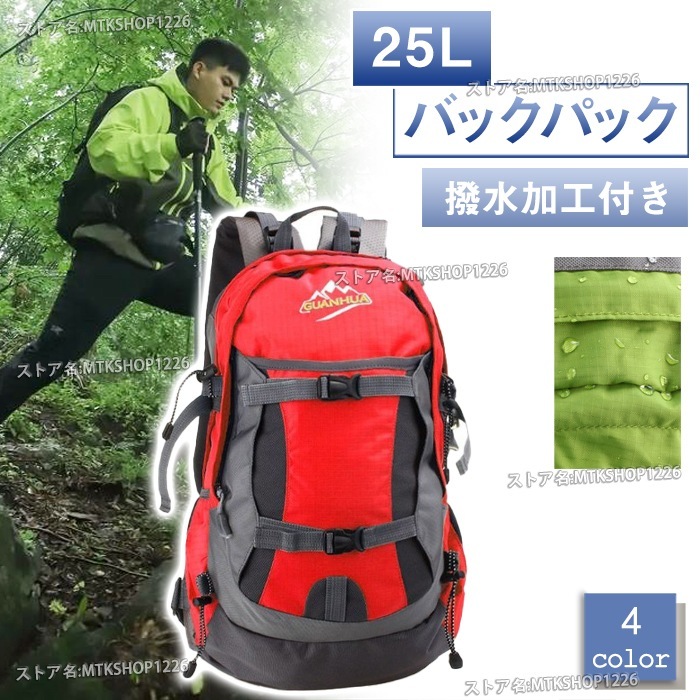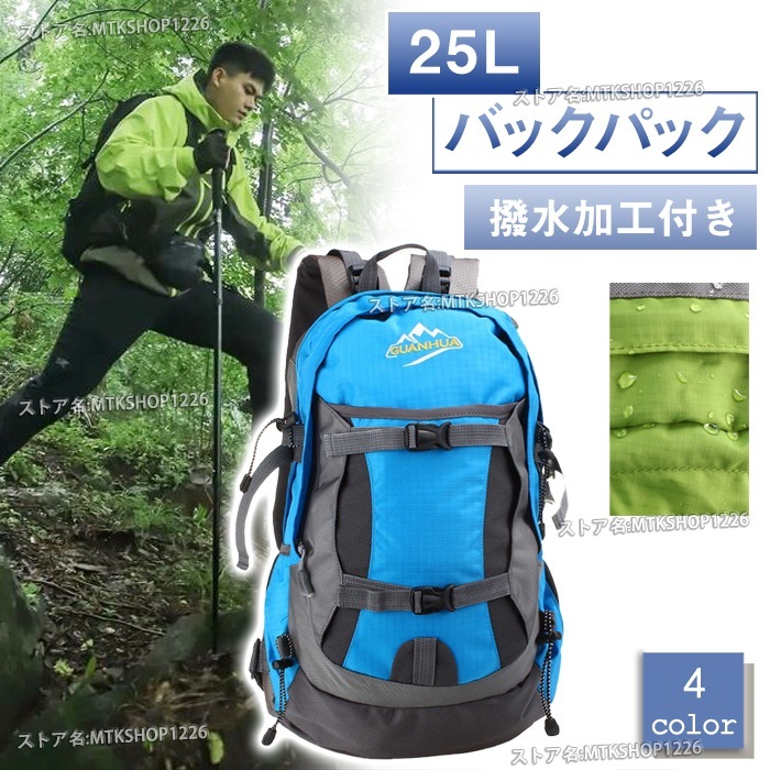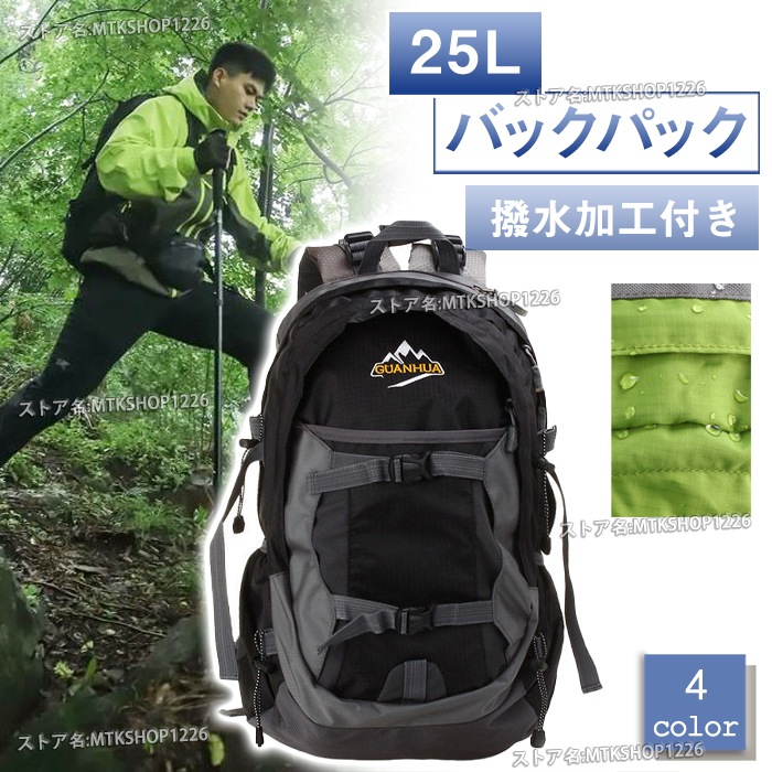 リュック 25L 全4色 撥水 大容量 ナイロン 軽量 登山 遠足 防災 旅行 キャンプ バスケットボール サッカー 通学 マウントハッピー バックパック ザック