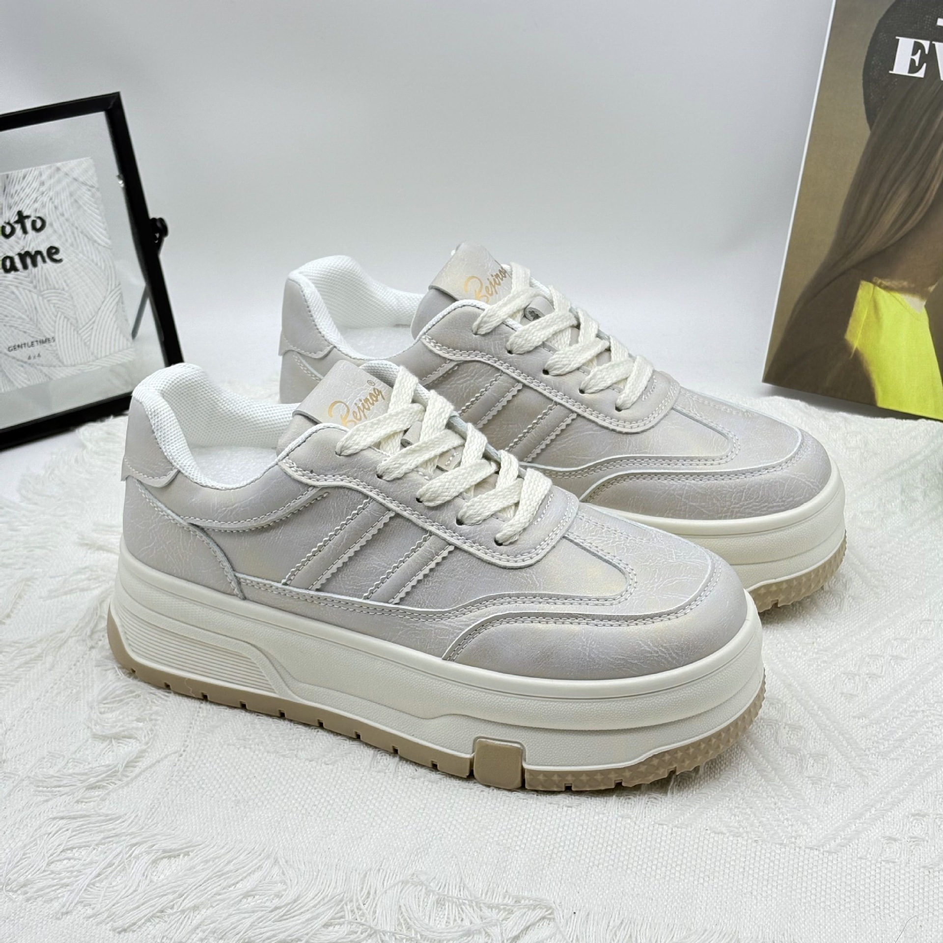 厚底マフィンソールの白いスニーカー女性用新作春夏スポーツカジュアル万能新作ドイツ軍風アガーシューズ女性用