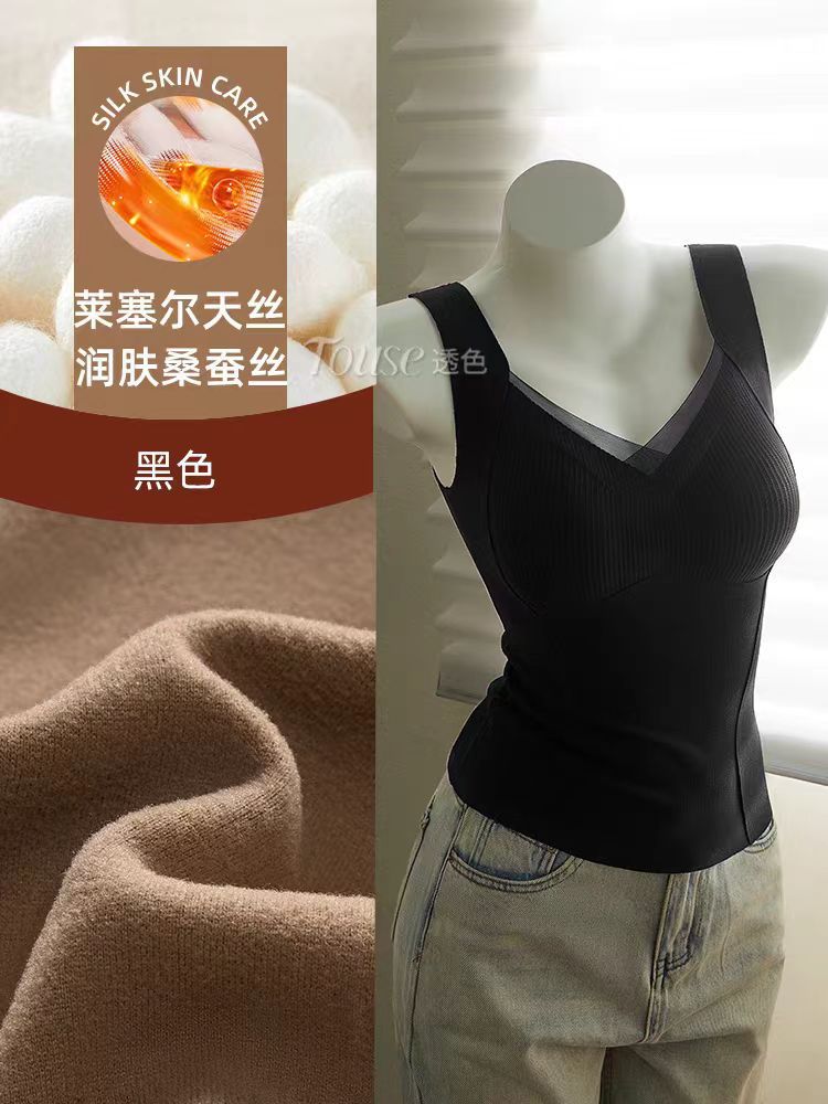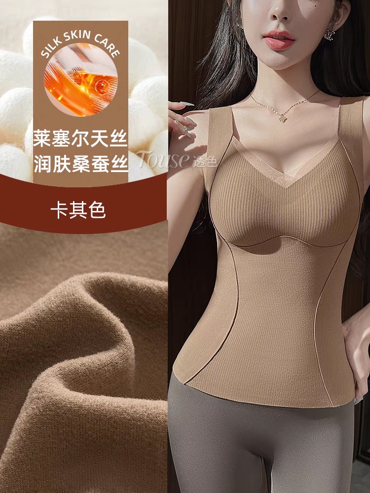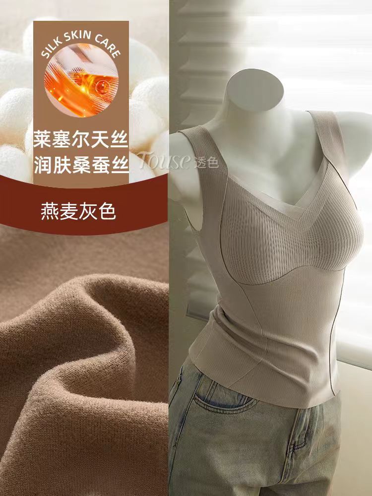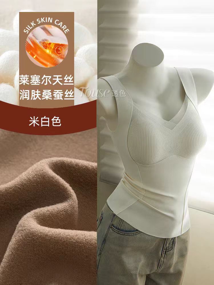 起毛 保温 ベスト レディース 胸パッド付き ブラ不要 文胸 一体型 インナー ブラ ノーマーク フィット インナー トップス