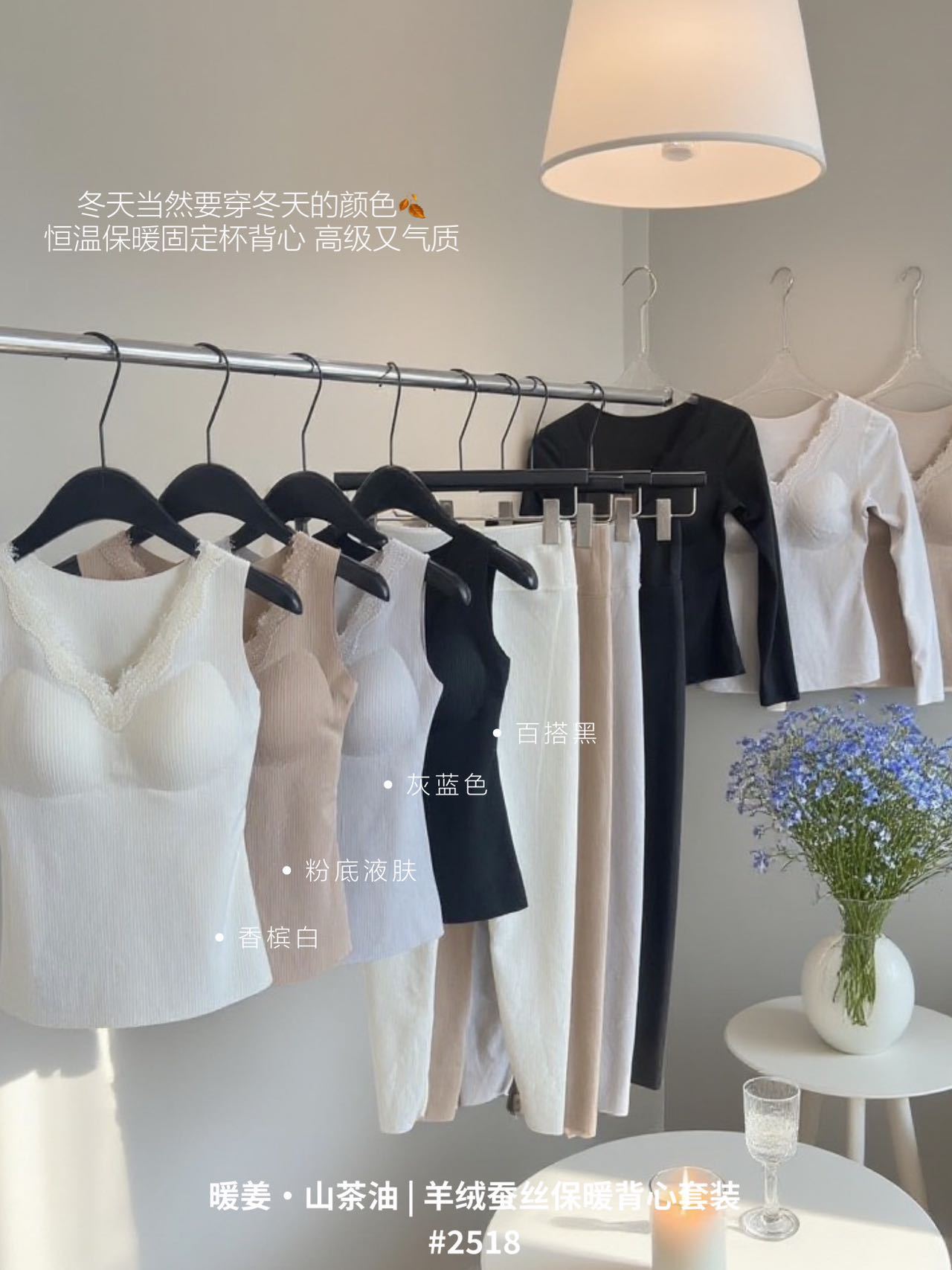 羊绒 蚕糸 保温 ベスト セット ブラ レディース 内蔵 胸パッド 固定カップ インナー フィット インナー ベスト