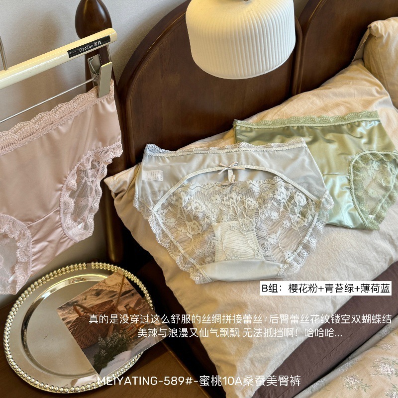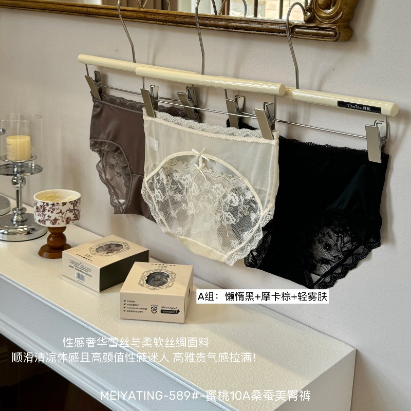 蜜桃 10A 美ヒップ パンツ 軽奢 シルキー サテン ノーマーク 薄手 透かし レース 快適 通気性 レディース 三角 パンティ