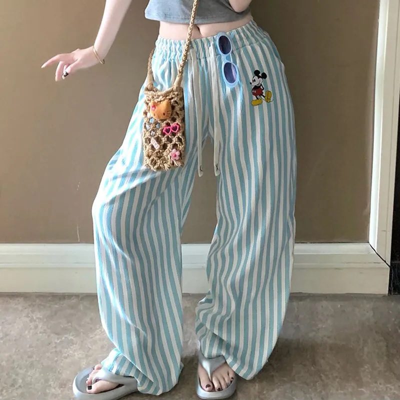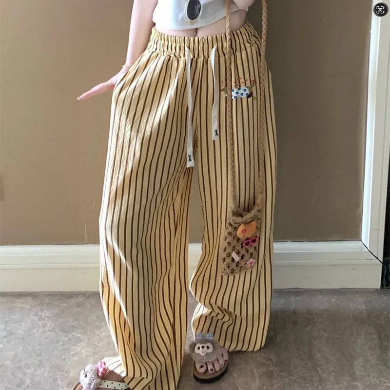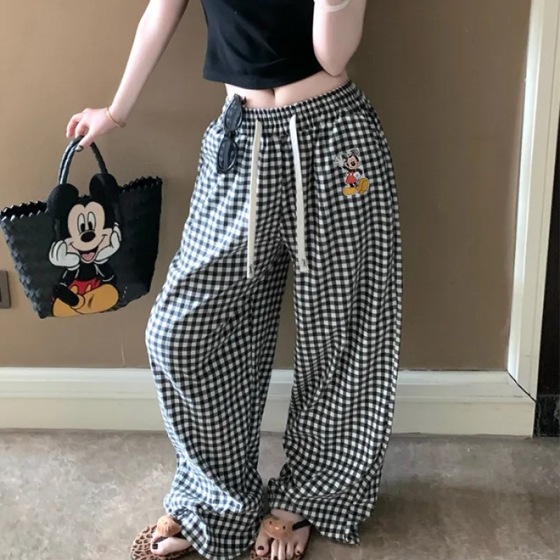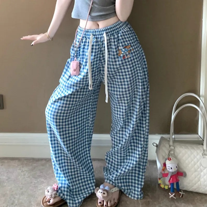 夏のお散歩パンツ クラウドコットン パジャマパンツ レディース ダブルポケット チェック柄 ストレート ワイドパンツ カジュアル ストライプ ルームウェア 外出用
