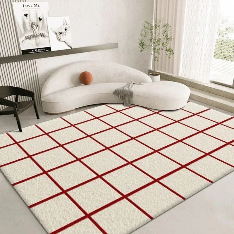 模造カシミヤ客間じゅうたん家庭茶数絨毯ins風クリーム寝室じゅうたん高級格子じゅうたん