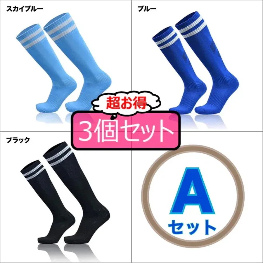 3足セットオフサッカーソックス ジュニア 膝上 無地 3足セット ストッキング 靴下 大人 子供 滑り止め フットサル スポーツ