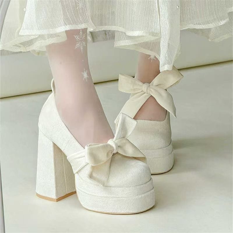 2026春と秋の新作ファッションダッドヒールlo靴防水台黒ハイヒール女性バンド優雅メアリージェン単靴ウェディングドレス