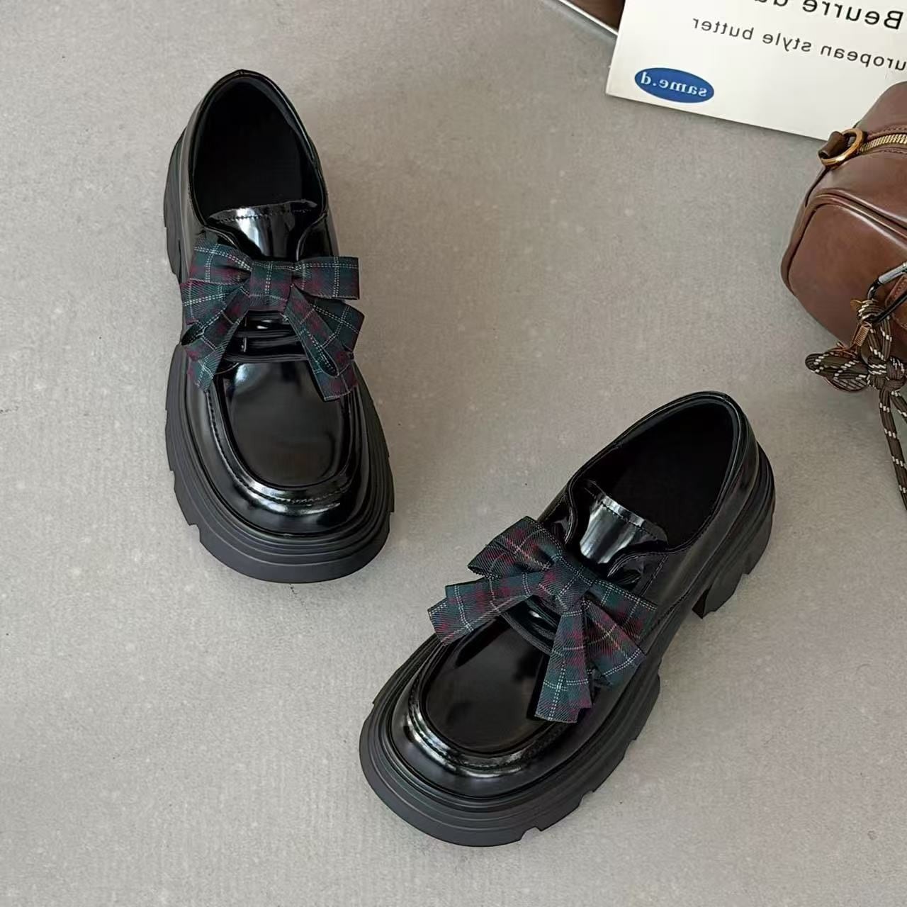 マドレーヌの甘いリボン学院の革靴女性2026新型春の英倫系バンド楽福靴厚底単靴