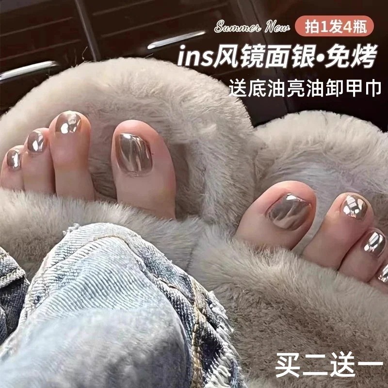 ミラーマニキュア接着剤ノーベーク 26 速乾性長持ちマジックミラーパウダーオーロラシルバーつま先マニキュア