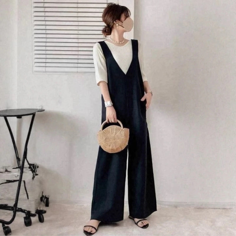 レトロ サロペット デザイン ゆったり サロペットスカート 日系ロングワイドパンツ オールインワン レディース 体型カバー サロペットパンツ 着痩せ ワイドパンツ