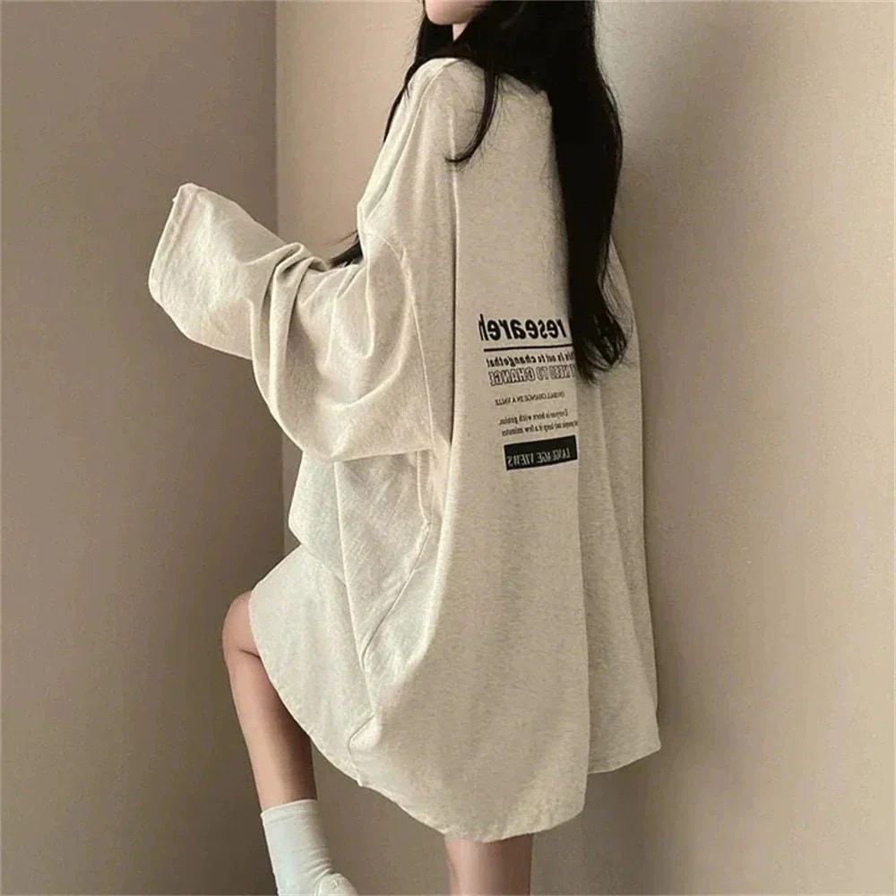 追加同じデザインの長袖 半袖Tシャツ トレーナー レディースゆるとお洒落スウェット トレーナー Tシャツ綿長袖 半袖Tシャツレディースミディアム丈サマーネ