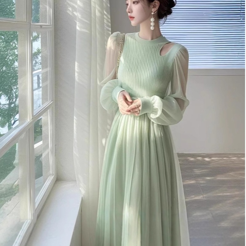 春服 レディース ワンピース かわいい 気質 プリーツワンピース ニット ロングワンピース 夏 ドレス