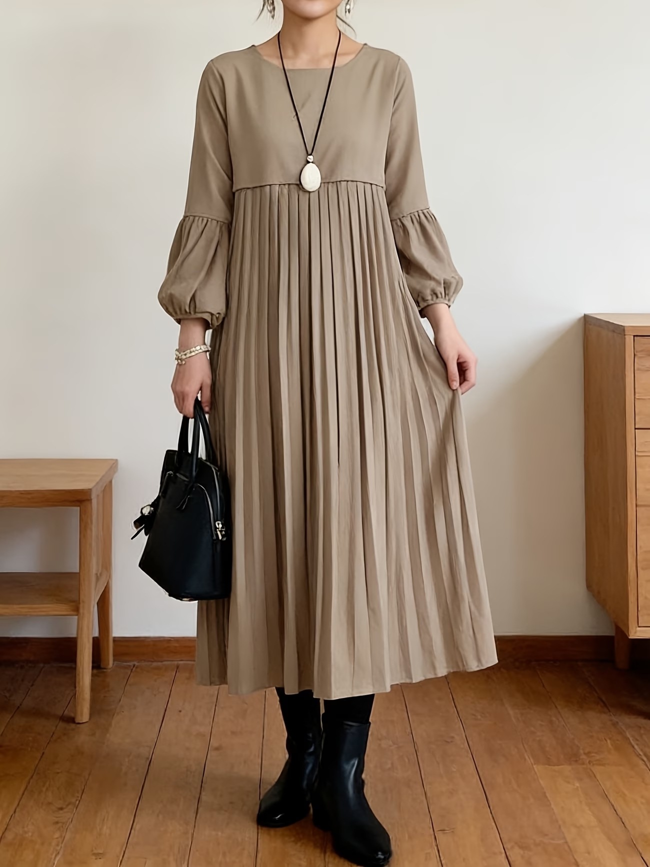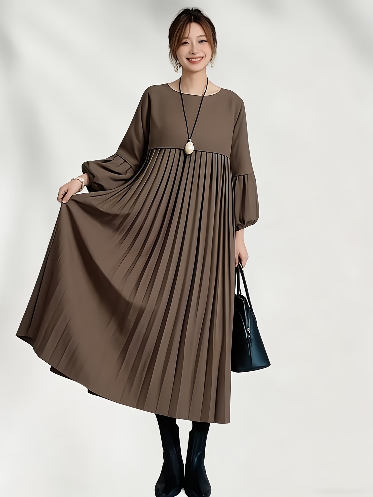 レディース 春服ゆったり 揺れるトレンド プリーツ ワンピース ロングワンピース 长袖 無地 プリーツ ゆったり おしゃれ 体型カバー シンプル ナチュラル 上品 大人 4159