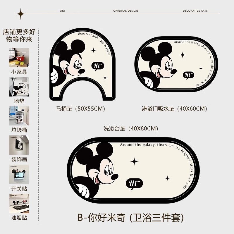 【迅速な出荷】カーペット かわいい ミッキー トイレ バスマット 強吸水 速乾 シリカゲル 滑り止め ソフト 家庭用