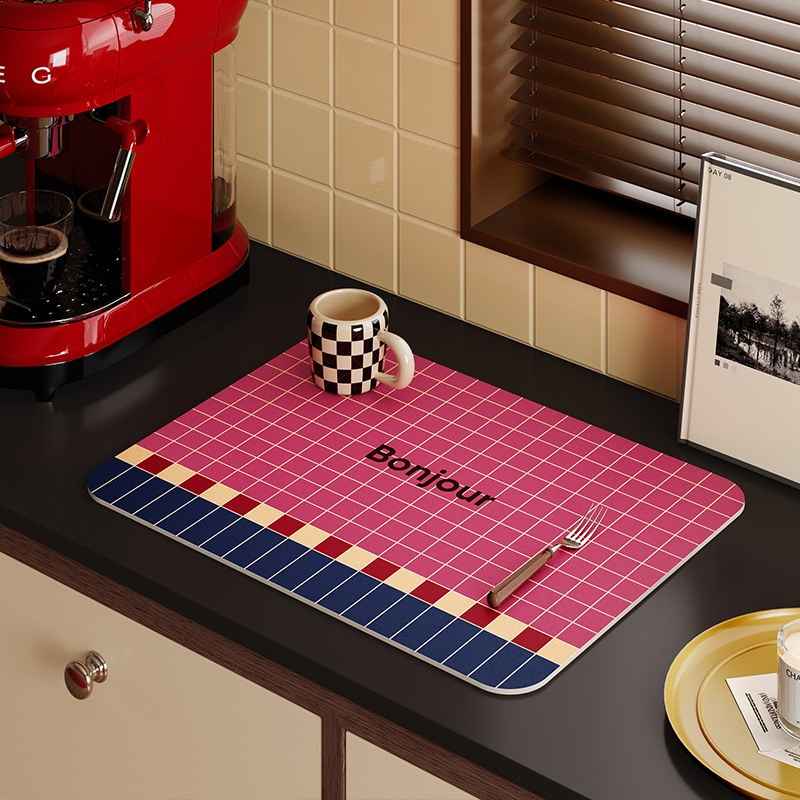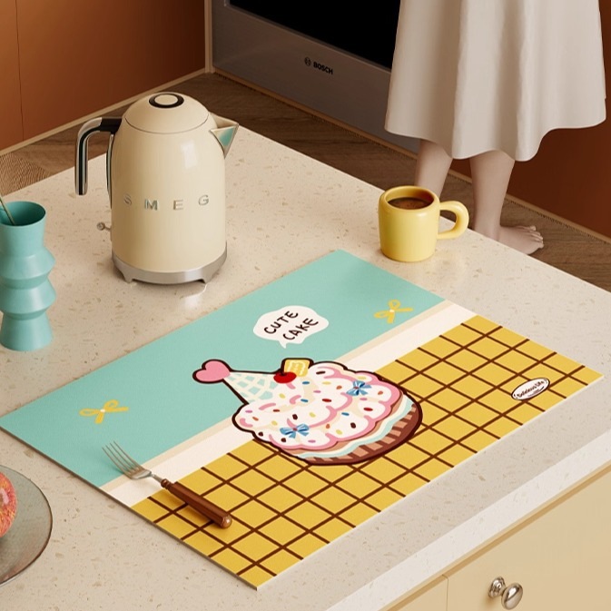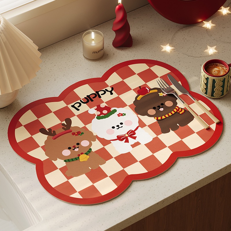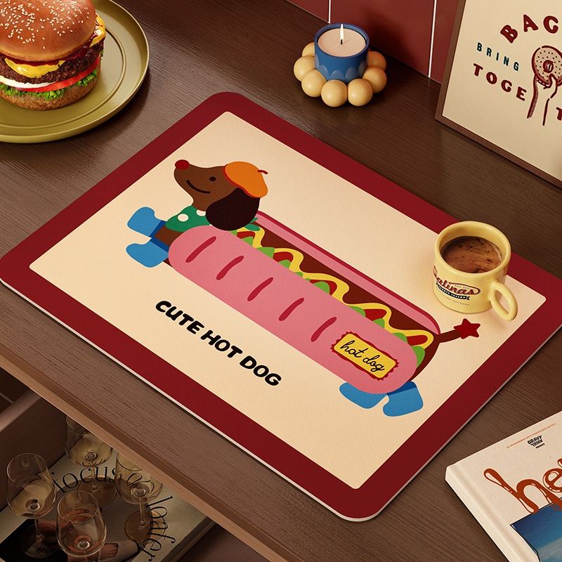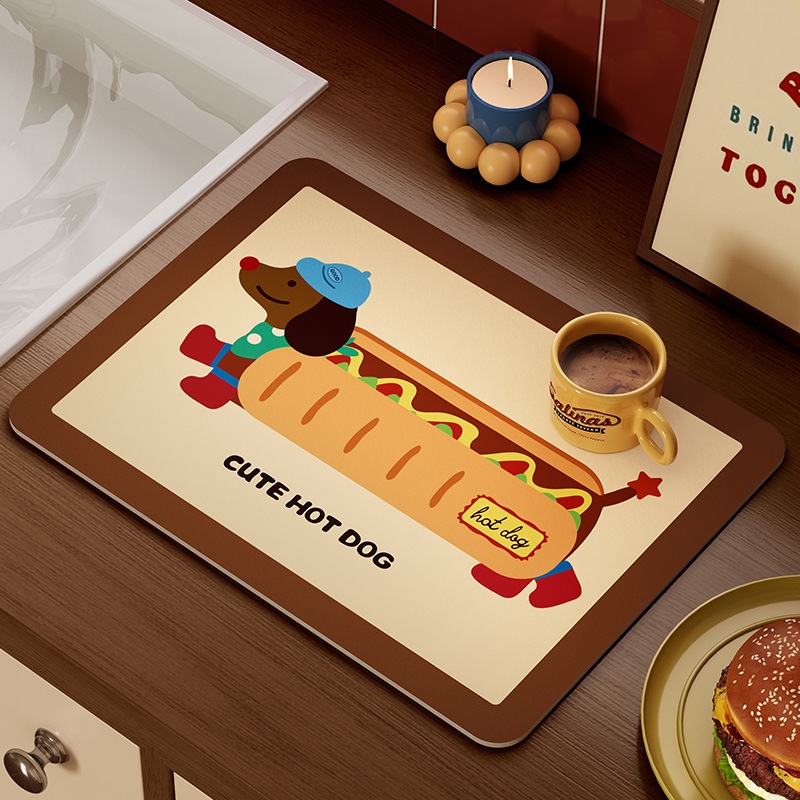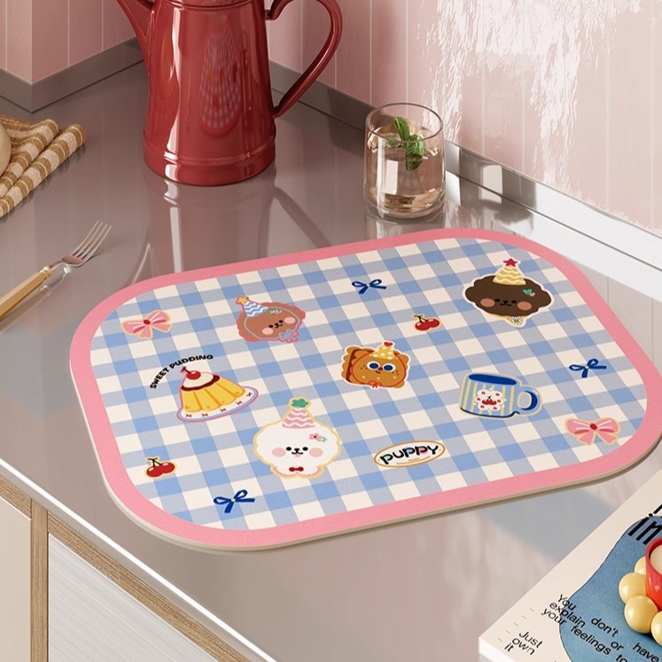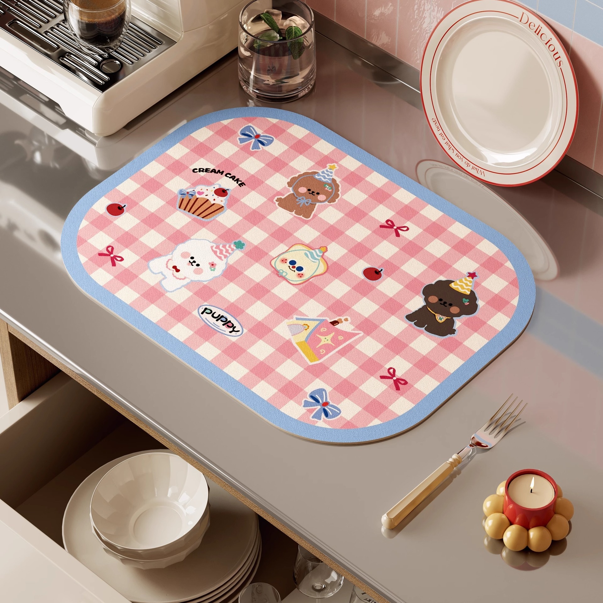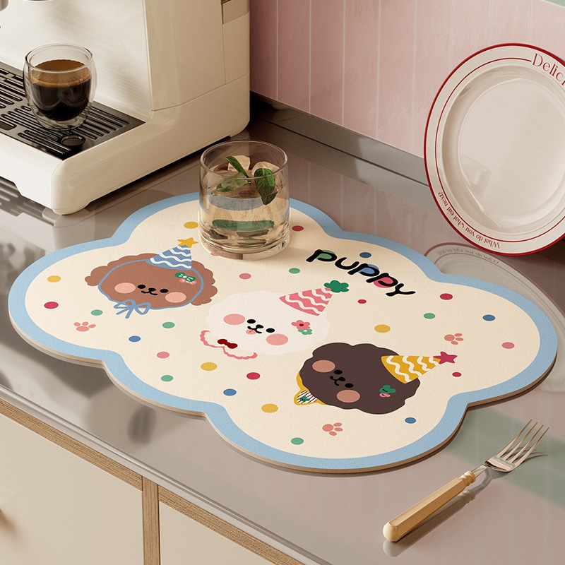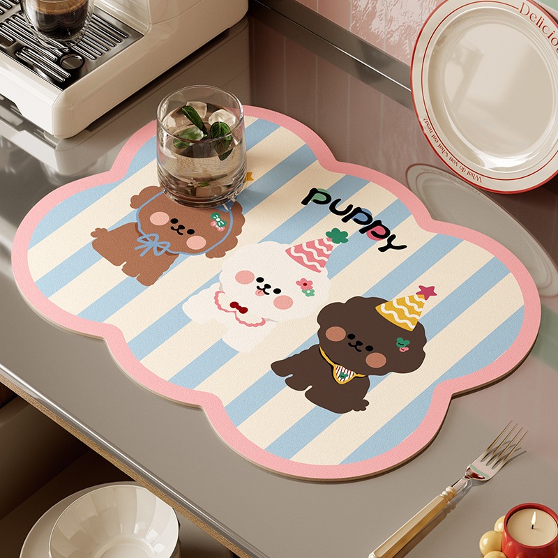 【迅速な出荷】ハイパー子犬 かわいい キッチン台 水切りマット コーヒーマシン 吸水 バーカウンター 食器 ランチマット