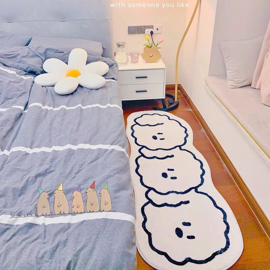【迅速な出荷】円形 キッズルームカーペット ゾウ デザイン ベッドサイドマット フェイクシープスキン 毛足長め かわいい
