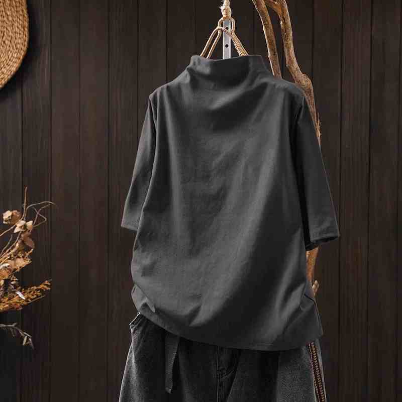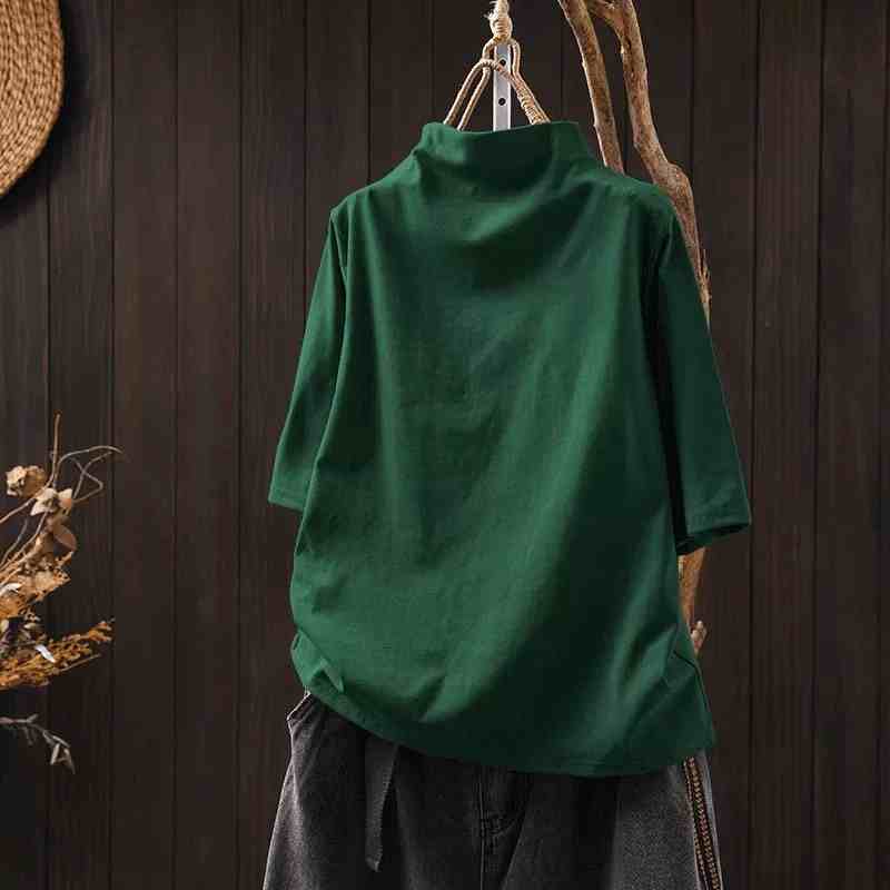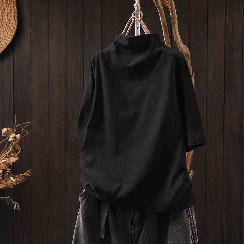 【リピー数高】 ハーフネック 五分袖 無地 ぴったりしたサイズ感 休日/外出 シンプル Tシャツ