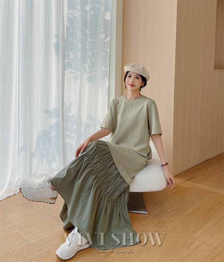 「最安値販売」ワンピース 夏 マキシ丈 レディース サマーワンピース 半袖 ゆったり 切り替え 体型カバー 半袖ワンピース 無地 Tシャツワンピース