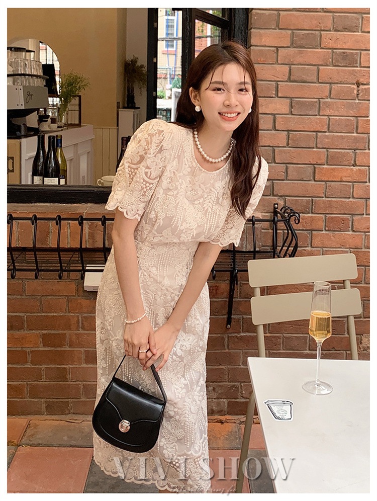 「最安値販売」ワンピース レディース マキシワンピース 春夏 半袖ワンピース レース スカート オシャレ OL 大人 上品 ウエストリボン