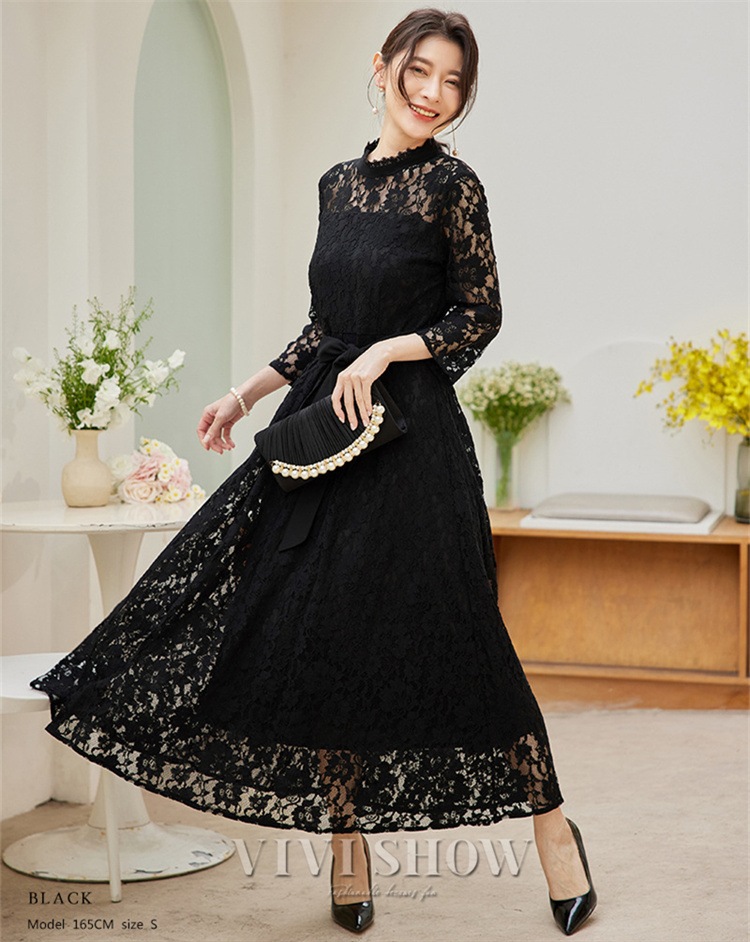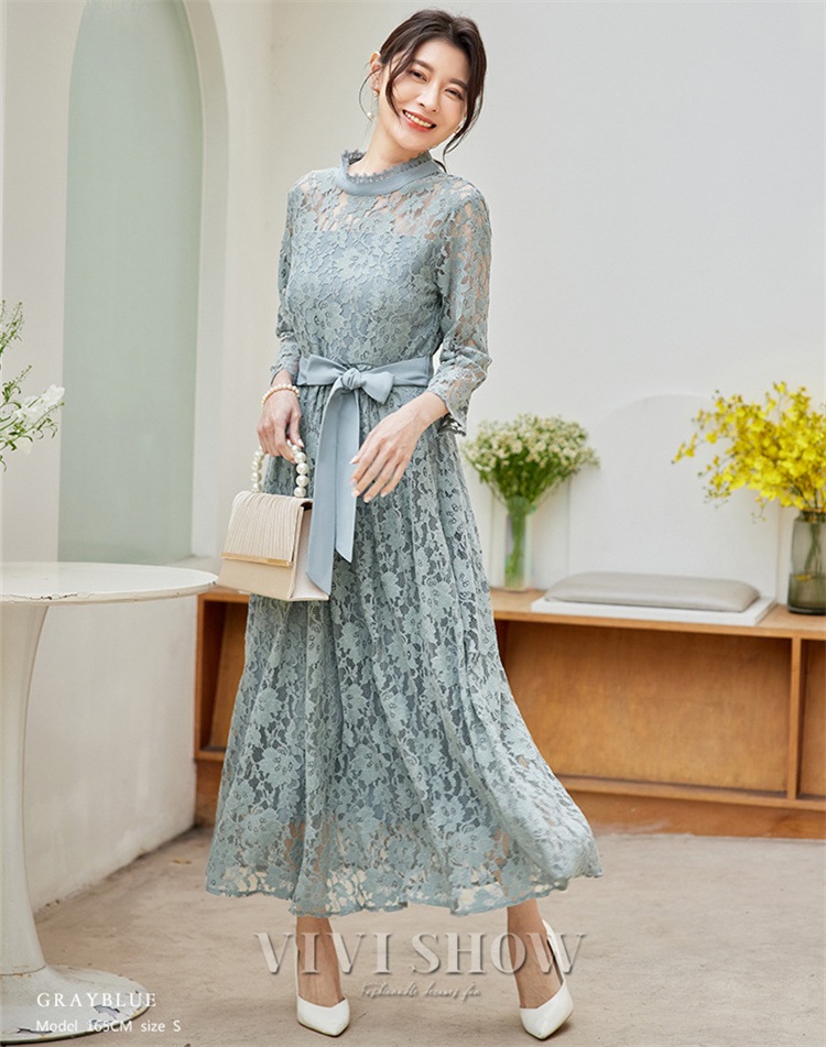 「最安値販売」パーティードレス ドレス 結婚式 ワンピース ロングドレス ロング 長袖 レース 2次会 同窓会 謝恩会 式 袖あり