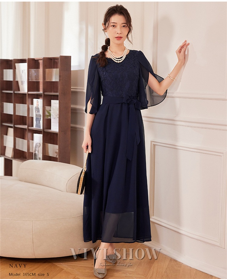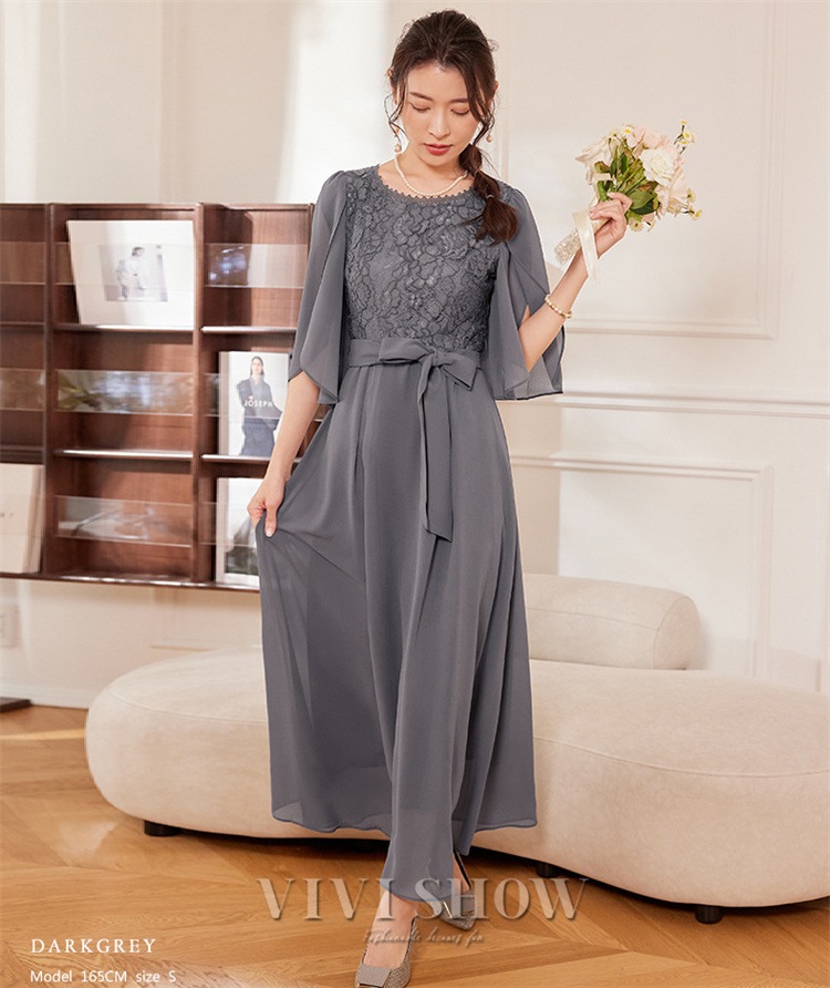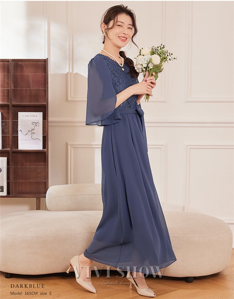 「最安値販売」ワンピース パーティードレス 結婚式 ロング 大きいサイズ お呼ばれ レース フリル ドレス マキシ きれいめ 楽チン 女子会 食事会 デート