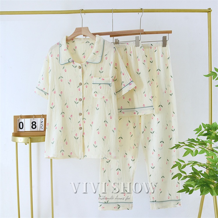 「最安値販売」3点セット パジャマ 下セットレディース 半袖 可愛い 部屋着 レディース上下セット 前開きパジャマ 肌にやさしい 柔らかい
