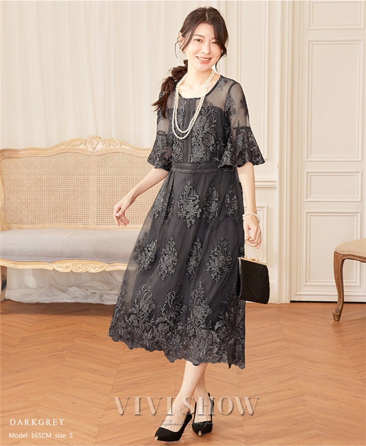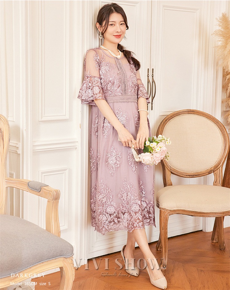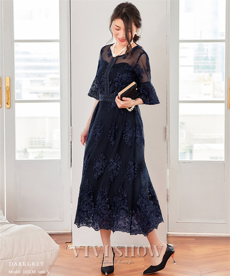 「最安値販売」パーティードレス ドレス 結婚式 ワンピース ロングドレス ロング レース 2次会 同窓会 謝恩会 式 袖あり