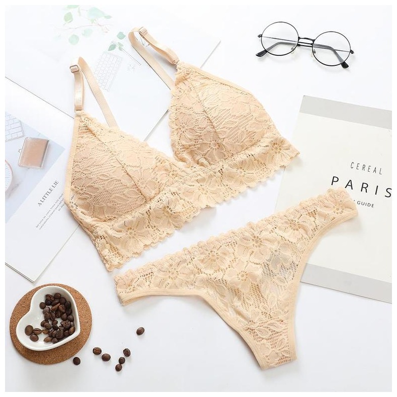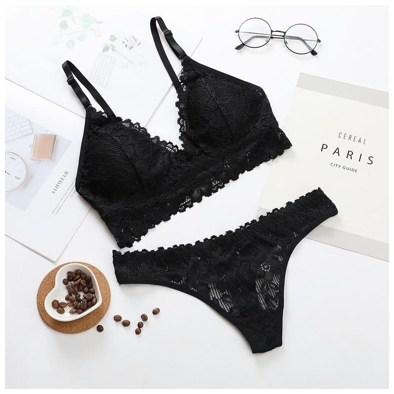 「最安値販売」ブラジャー ショーツセット繊細レース ノンワイヤー ブラ&ショーツセット Tバック 楽ちん