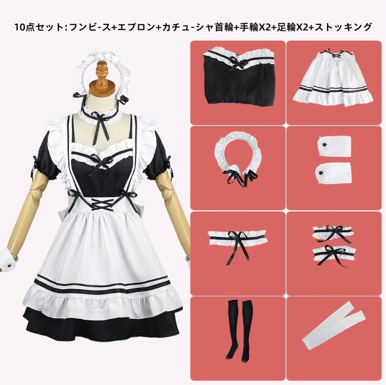 最安值に挑戰!【新品追加】10点セット メイド服 可愛いロリータ 白黒メイド服 コスプレ ビッグサイズ メイド服/仮装