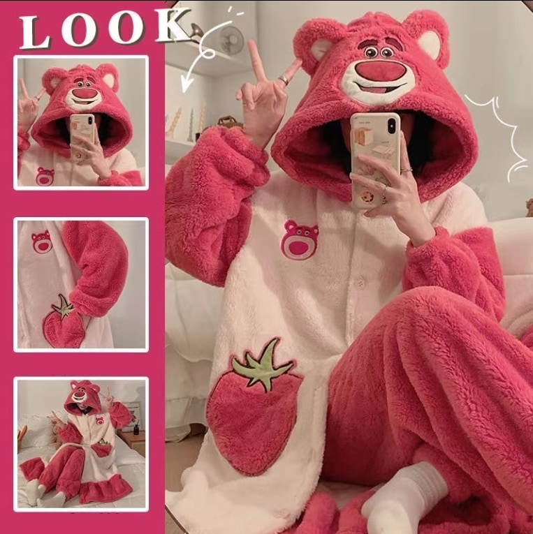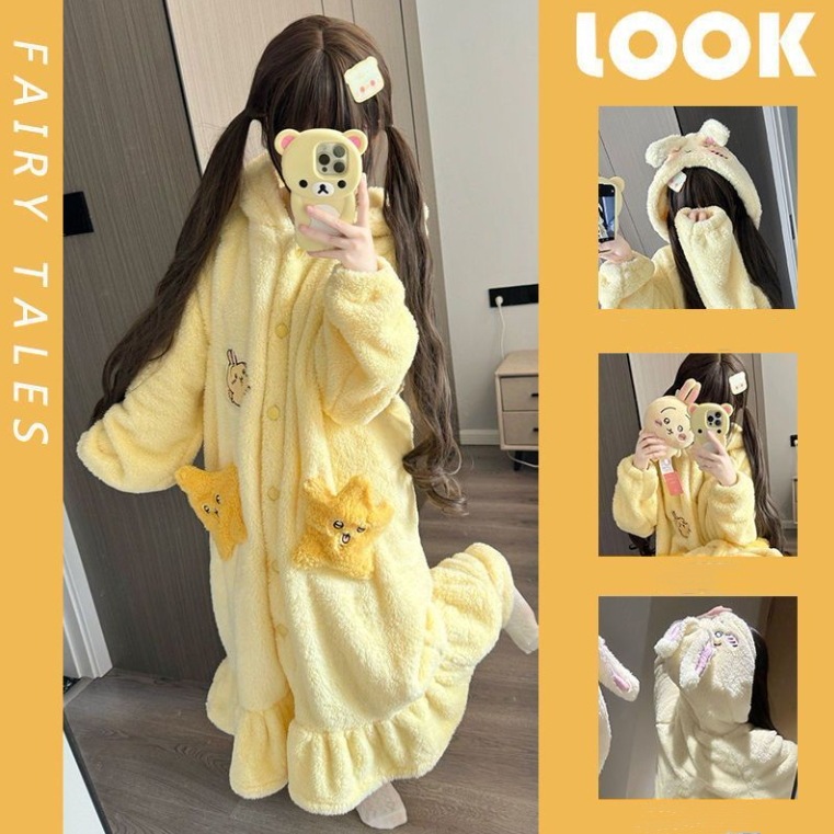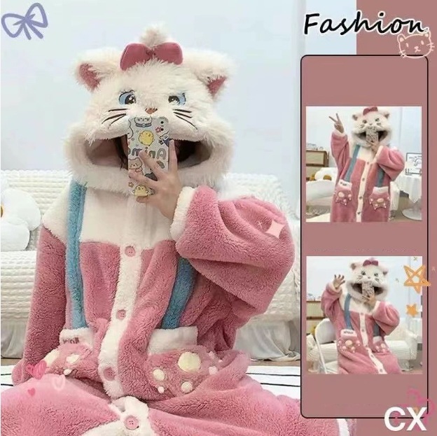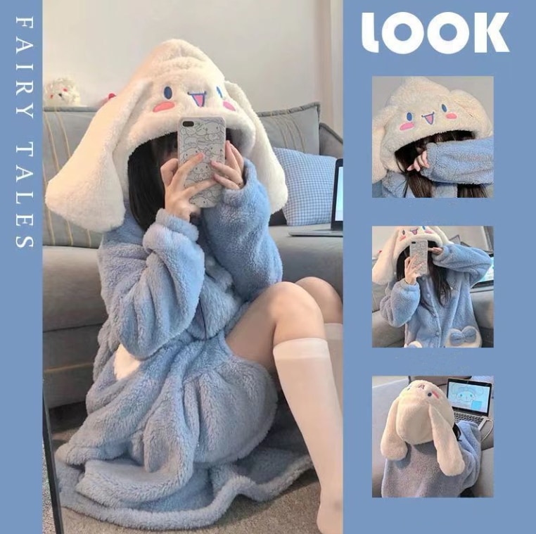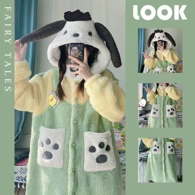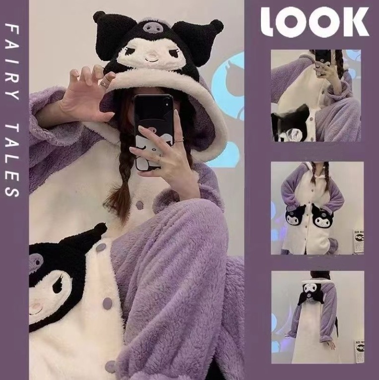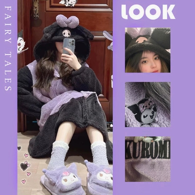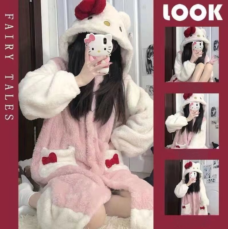 【急速出荷】【1+1景品】今年も人気!着ぐるみパジャマ かわいい マイメロデ シナモロール キティ クロミ 修学旅行人気の学園グループ服 モコモコバスローブ コスプレ 文化祭 ルームウェア ワンピース