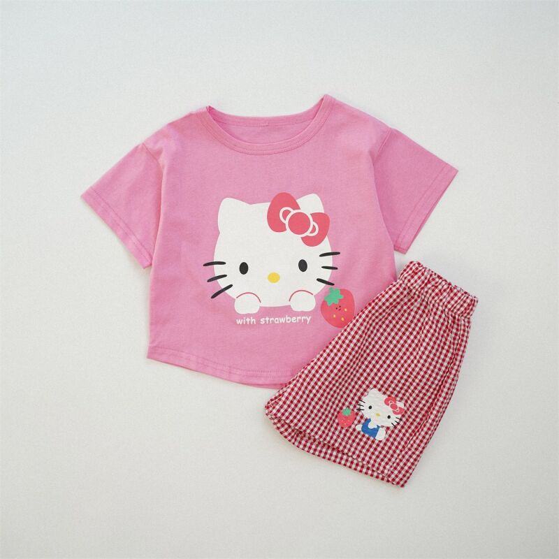 【最安値】【急速出荷】キャラクター 春夏 キッズtシャツ 上下2点セット 半袖Tシャツ 子供服 韓国ファッション ハローキティ シナモロール クロミちゃんマイメロワンピース