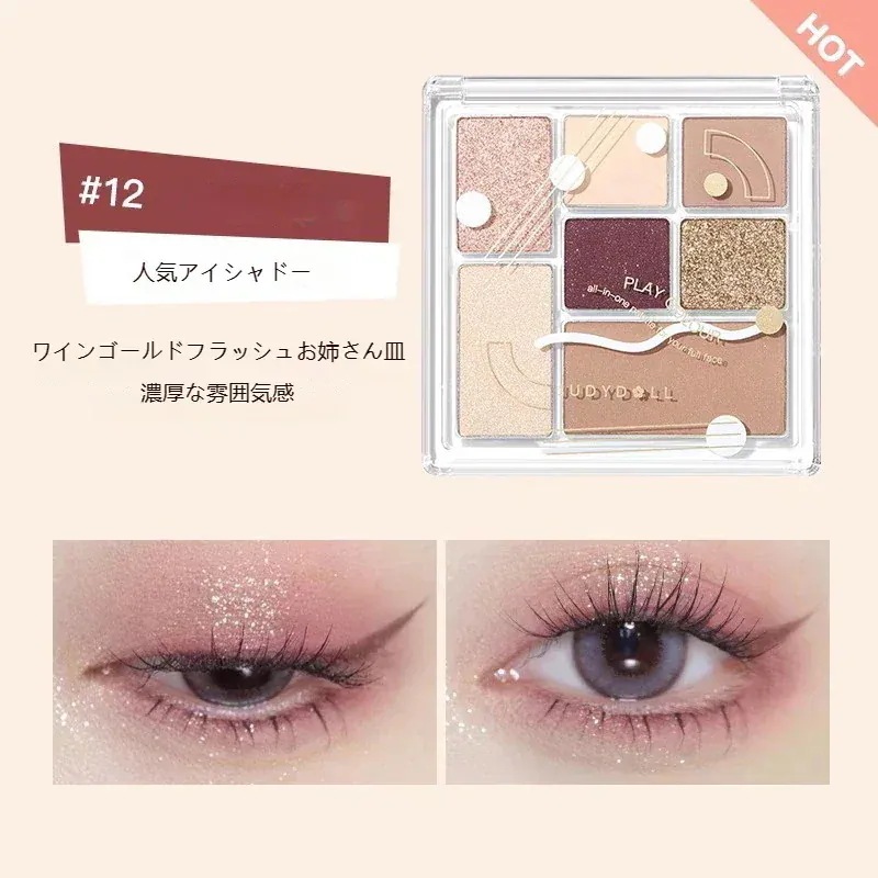JUDYDOLLアイシャドウパレット 7色 アイカラーパレット マット ラメ グリッタ 高発色 しっとり粉質 メイクパレット 涙袋メイク チーク&ハイライト兼用 持続する 高密着